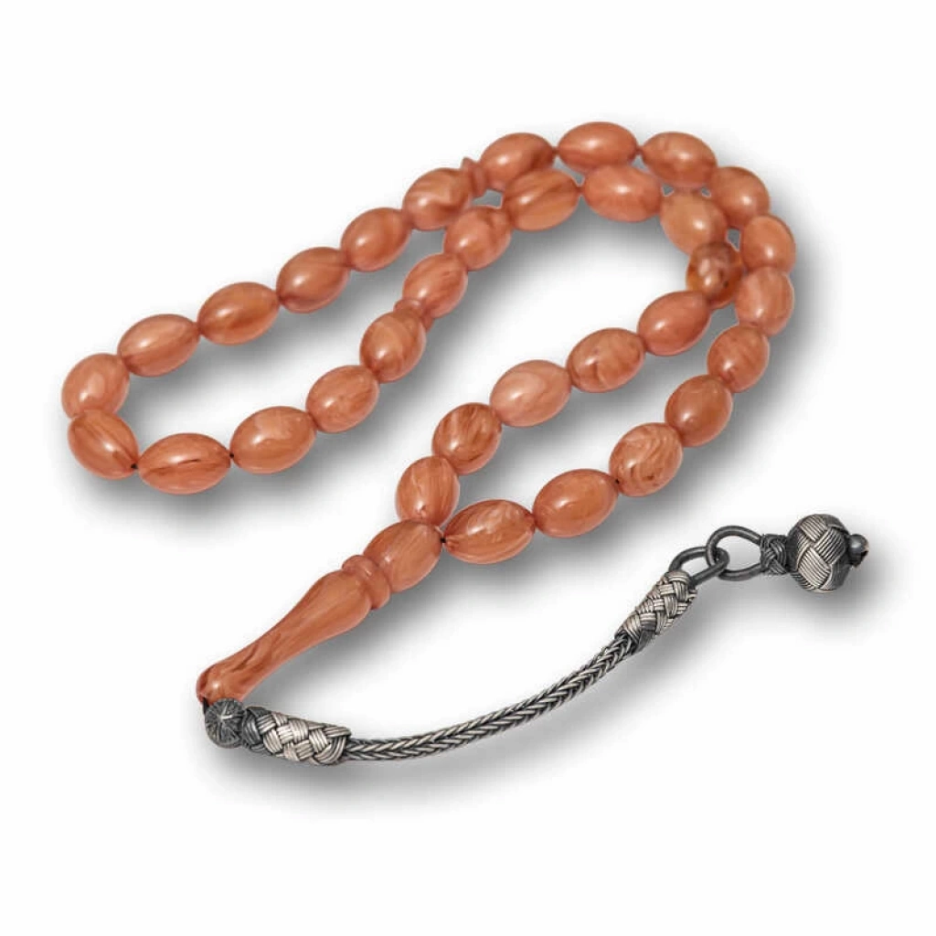 Gümüş Top Kazaz Püsküllü Sıkma Kehribar Tesbih