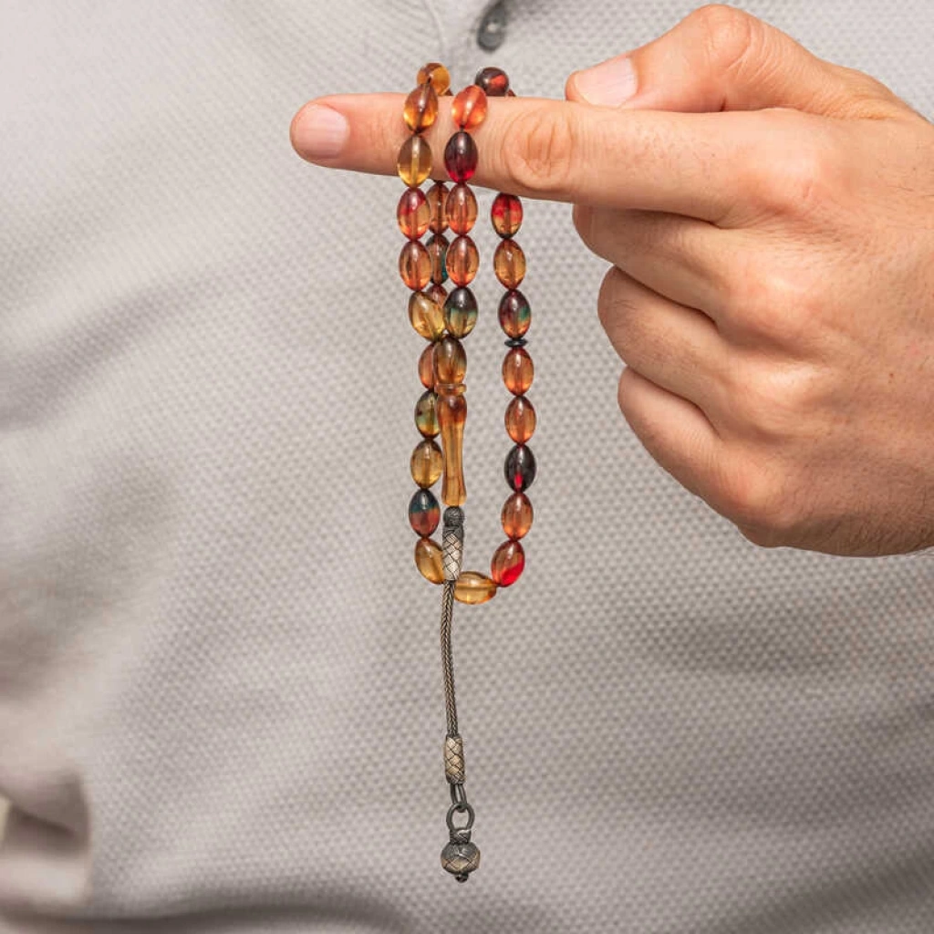 MuI MuI Gümüş Top Kazaz Püsküllü Sıkma Kehribar Tesbih