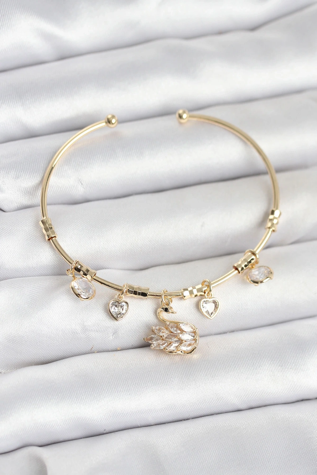 MuI MuI Kuğu Charmlı Gold Renk Kadın Bileklik