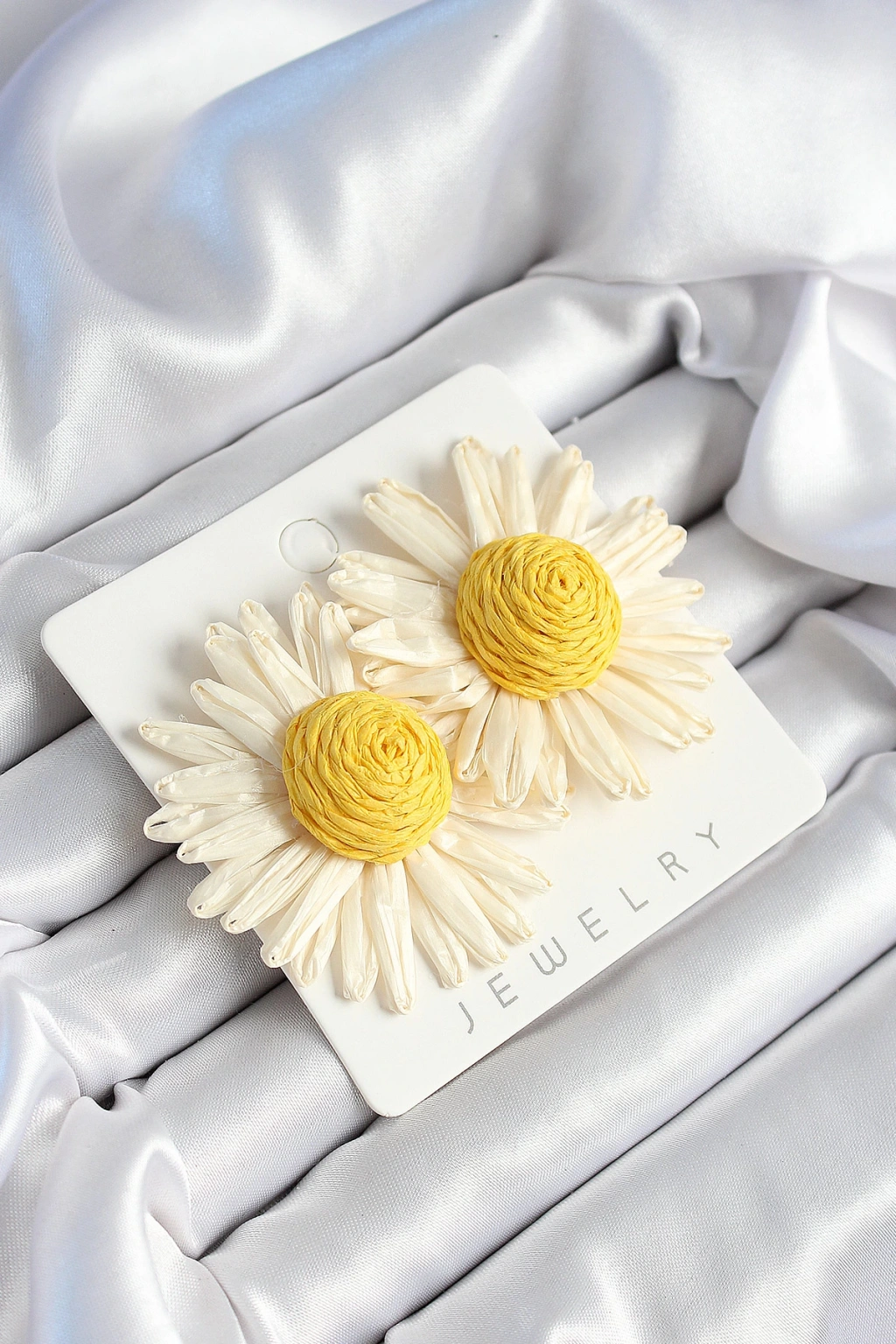 MuI MuI Papatya Model Beyaz Ve Sarı Renk Kadın Küpe