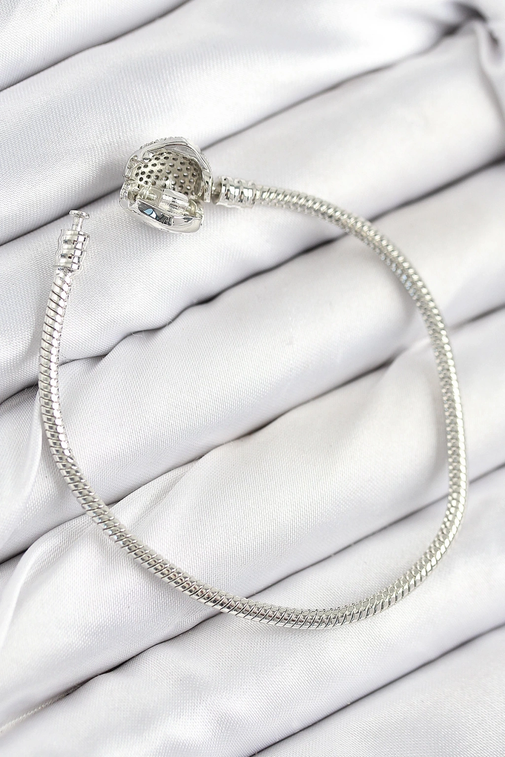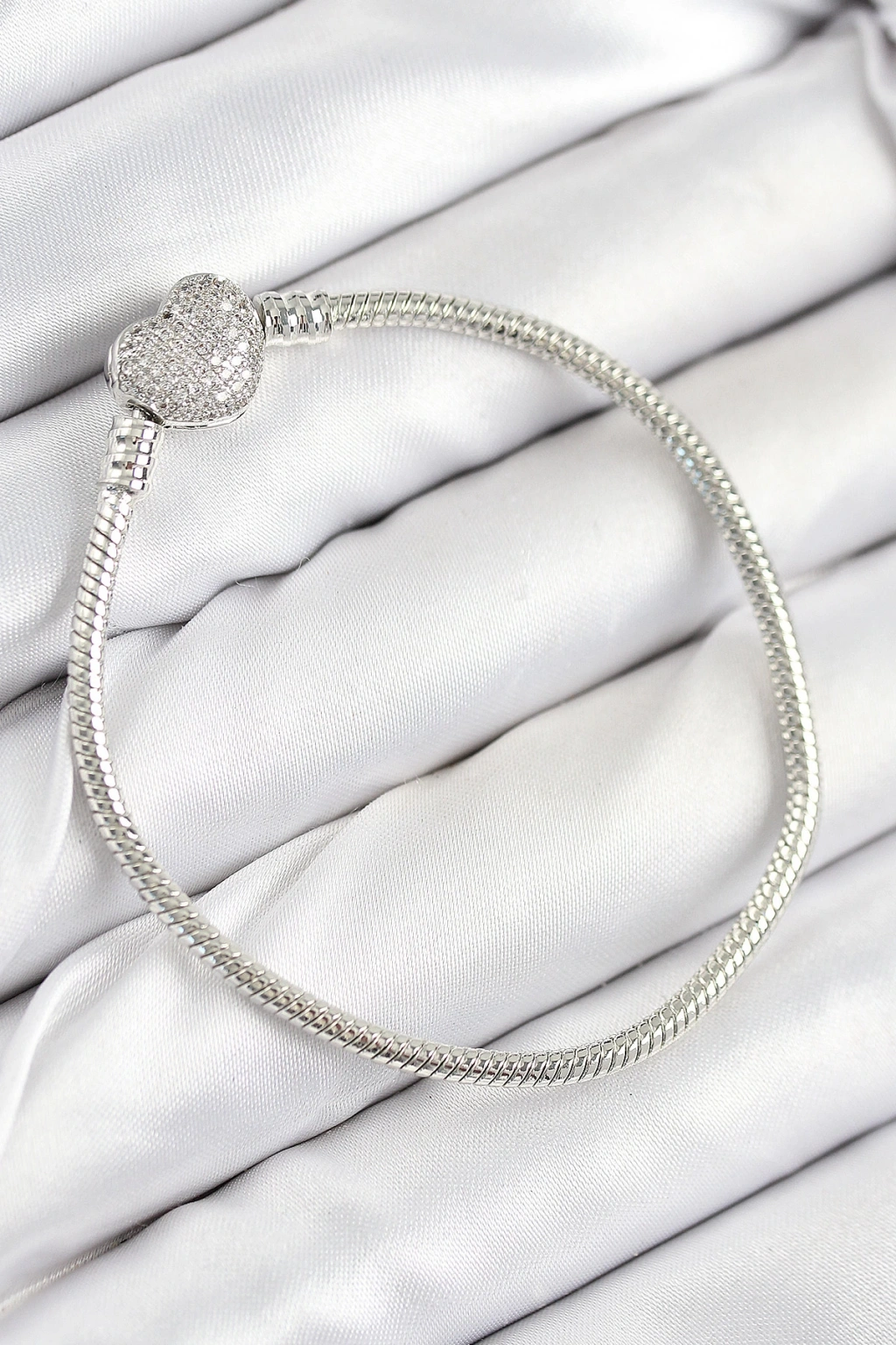MuI MuI Pirinç Charm Zirkon Taşlı Kalp Model Gümüş Renk Kadın Bileklik