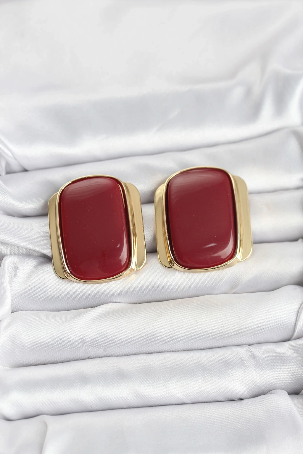MuI MuI Pirinç Gold Renk Bordo Plaka Vintage Kadın Küpe