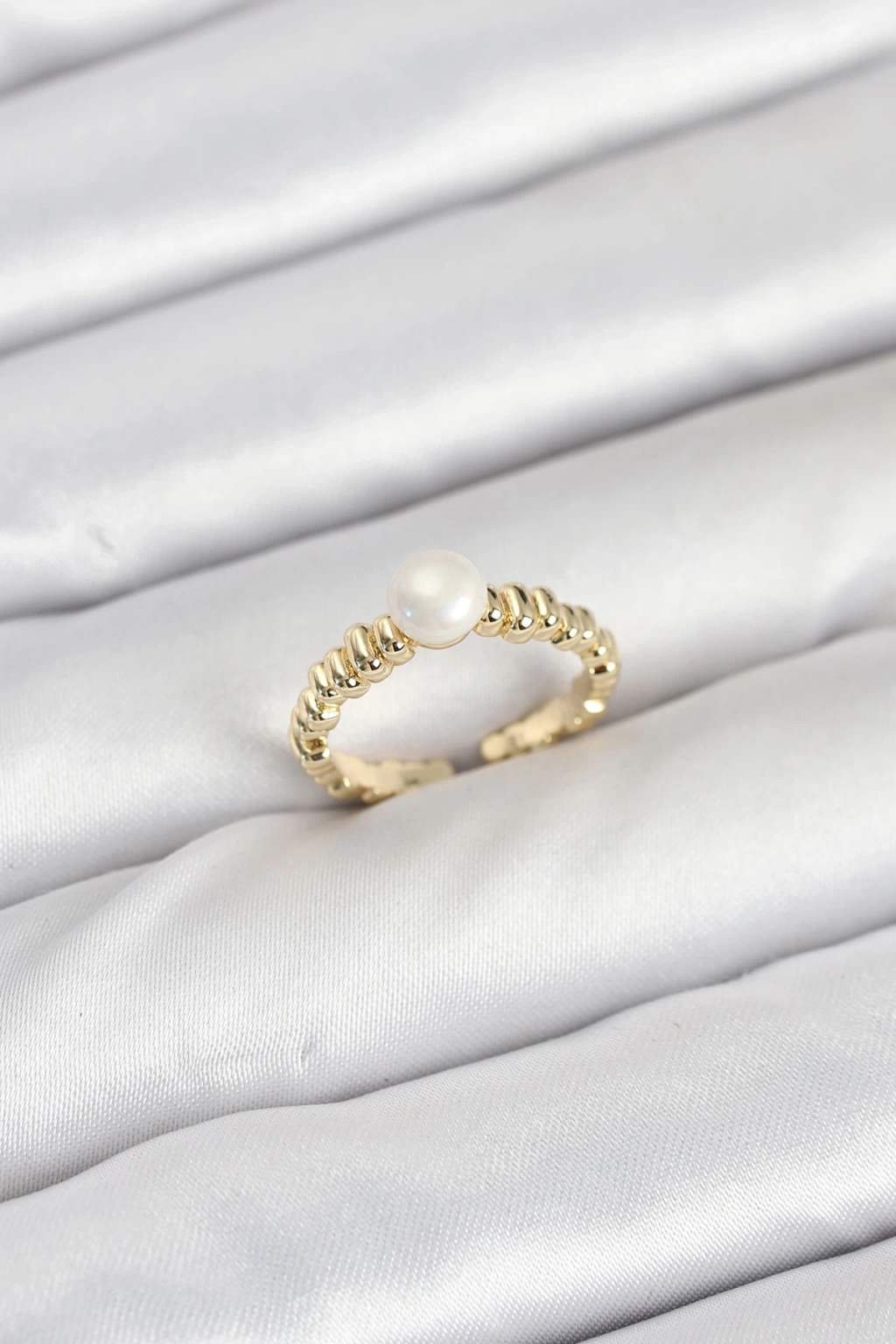 MuI MuI Pirinç Gold Renk Göbek İnci Model Kadın Yüzük