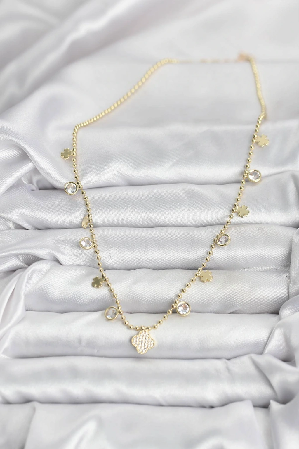 MuI MuI Pirinç Gold Renk Yonca Model Kadın Kolye
