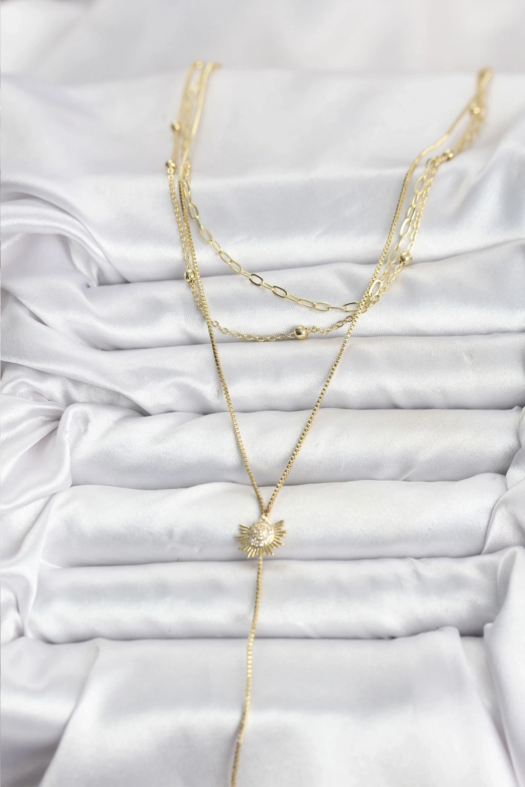 MuI MuI Pirinç Gold Renk Zirkon Taşlı Güneş Model Detaylı 3'lü Kombin Y Kadın Kolye