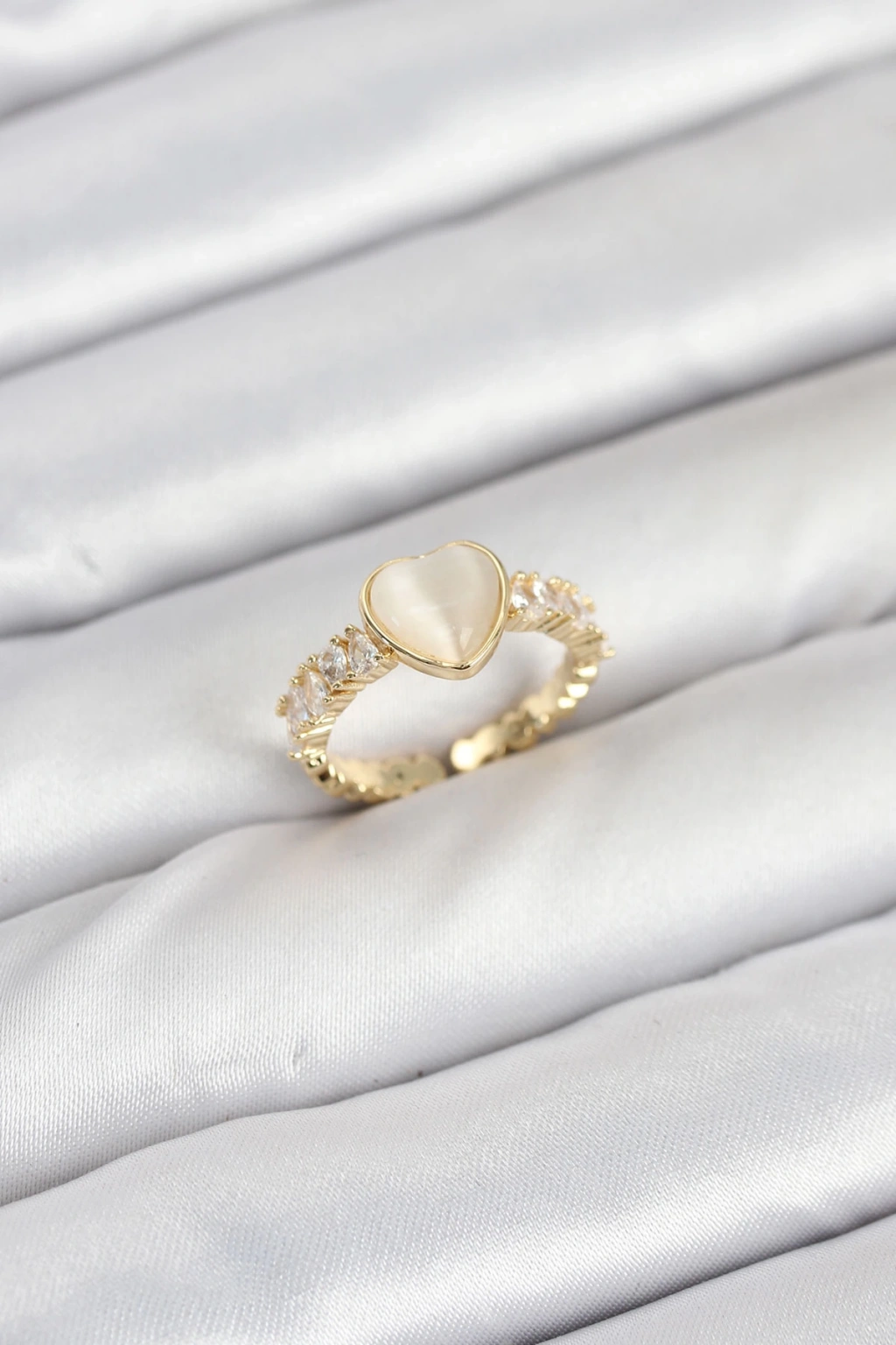 MuI MuI Pirinç Gold Renk Zirkon Taşlı Kalpli Kadın Yüzük