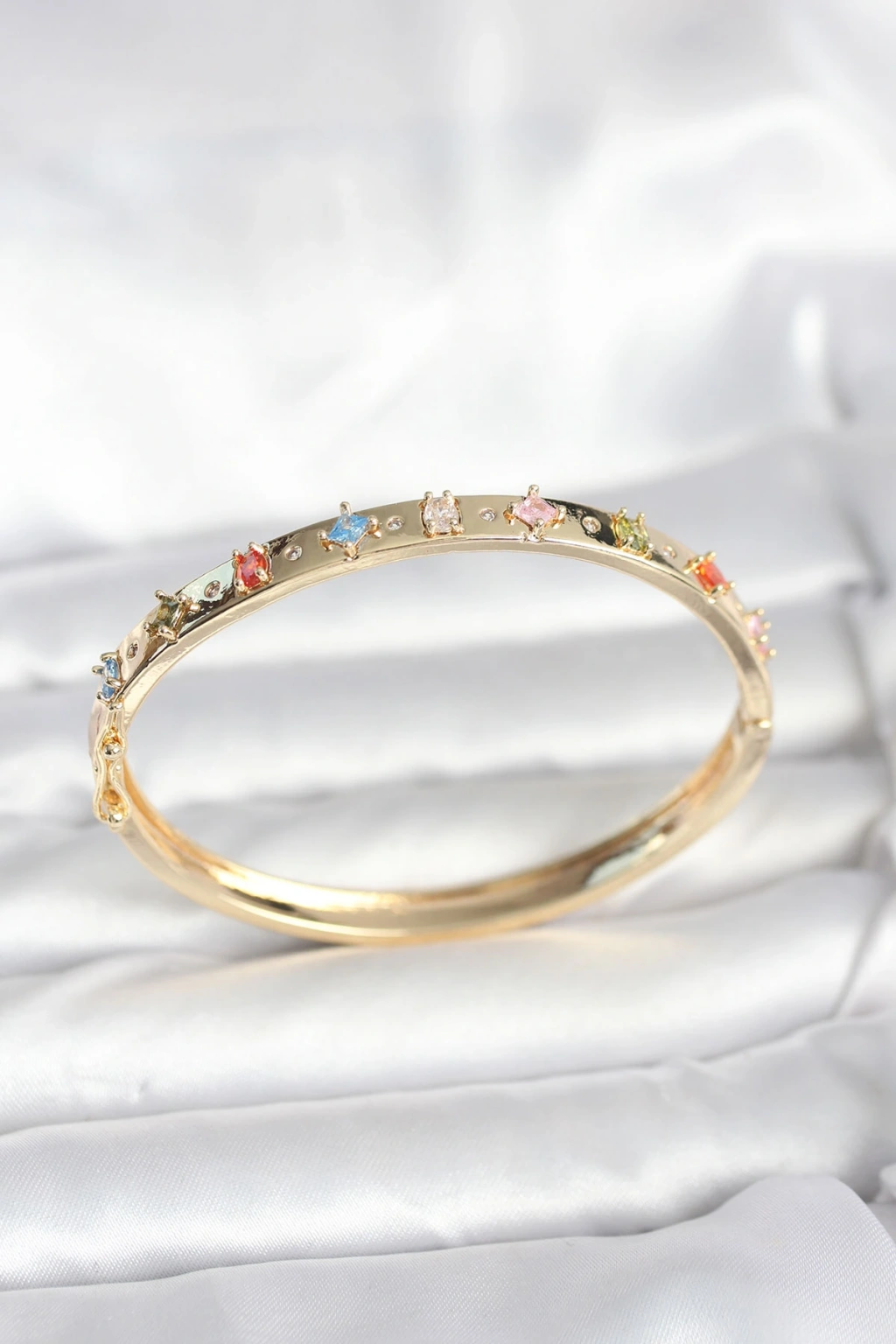 MuI MuI Pirinç Gold Renk Zirkon Taşlı Kelepçe Bileklik