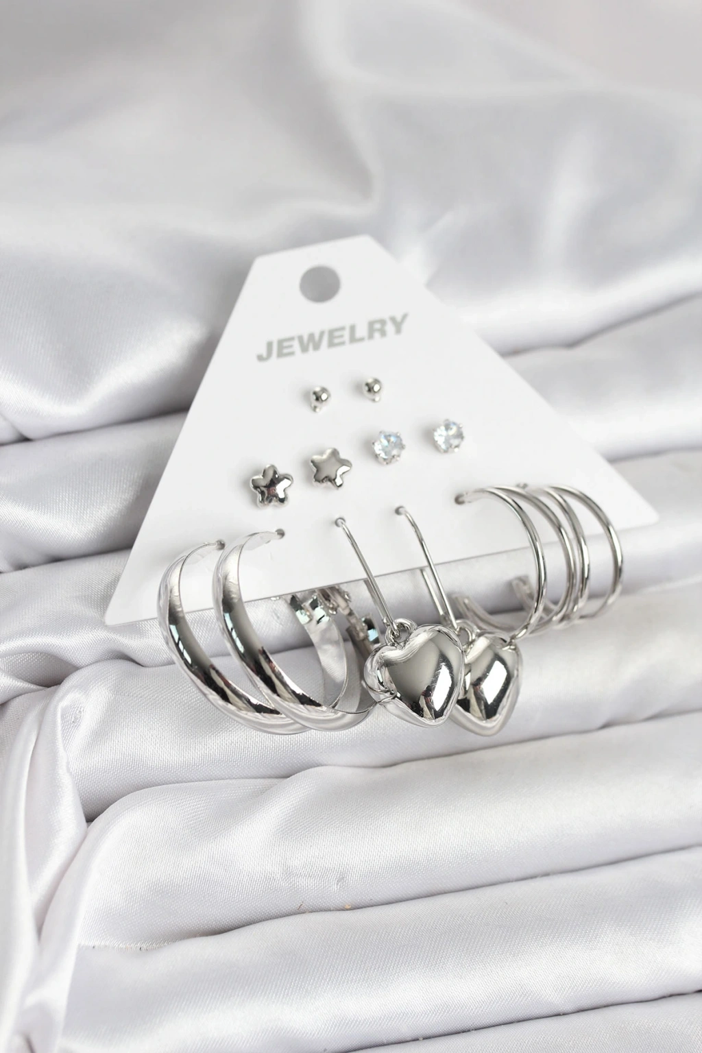 MuI MuI Pirinç Gümüş Renk 6 Çift Kadın Küpe Seti