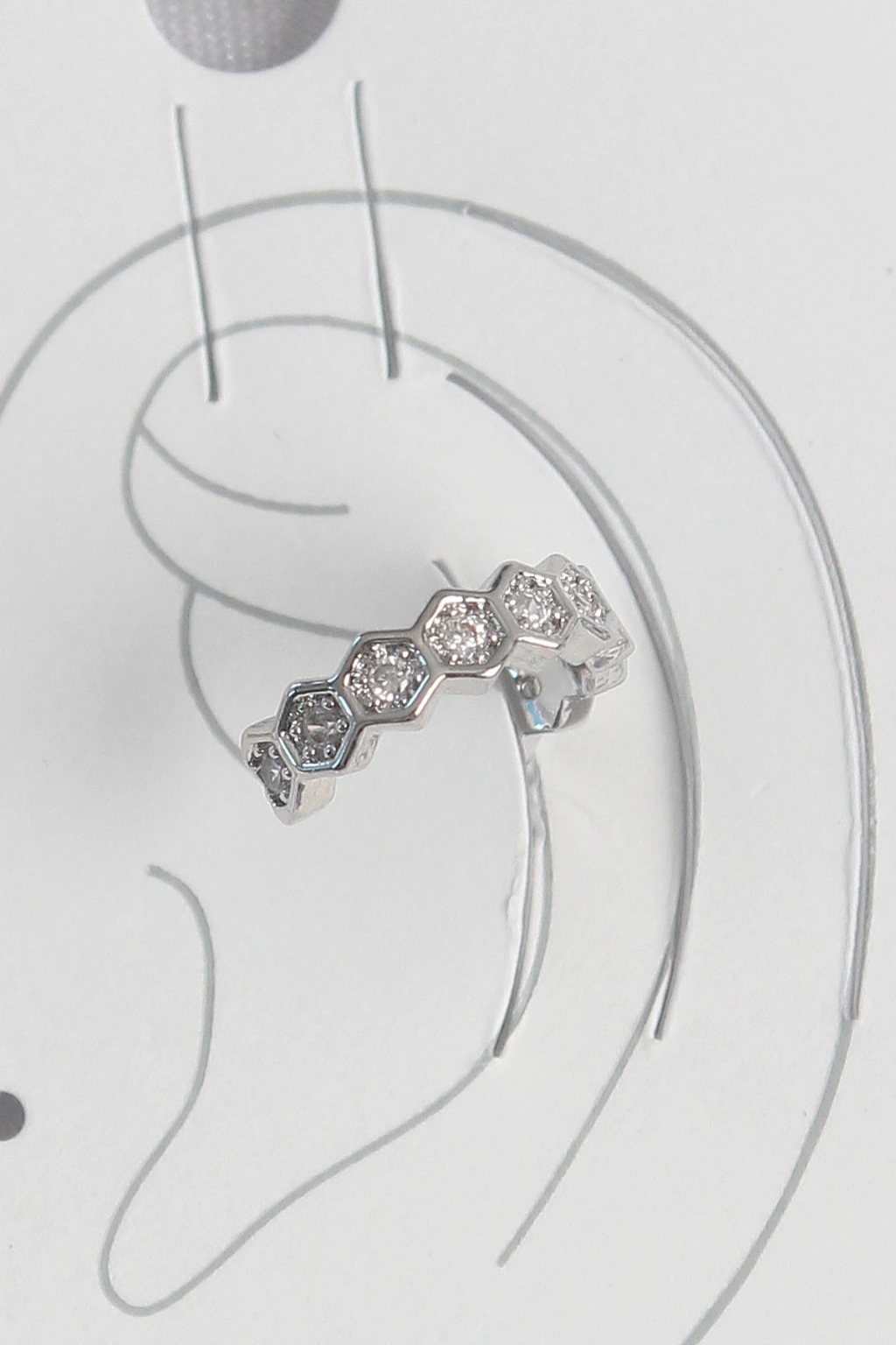 MuI MuI Pirinç Gümüş Renk Bal Peteği Model Zirkon Taşlı Kadın Kıkırdak Küpe