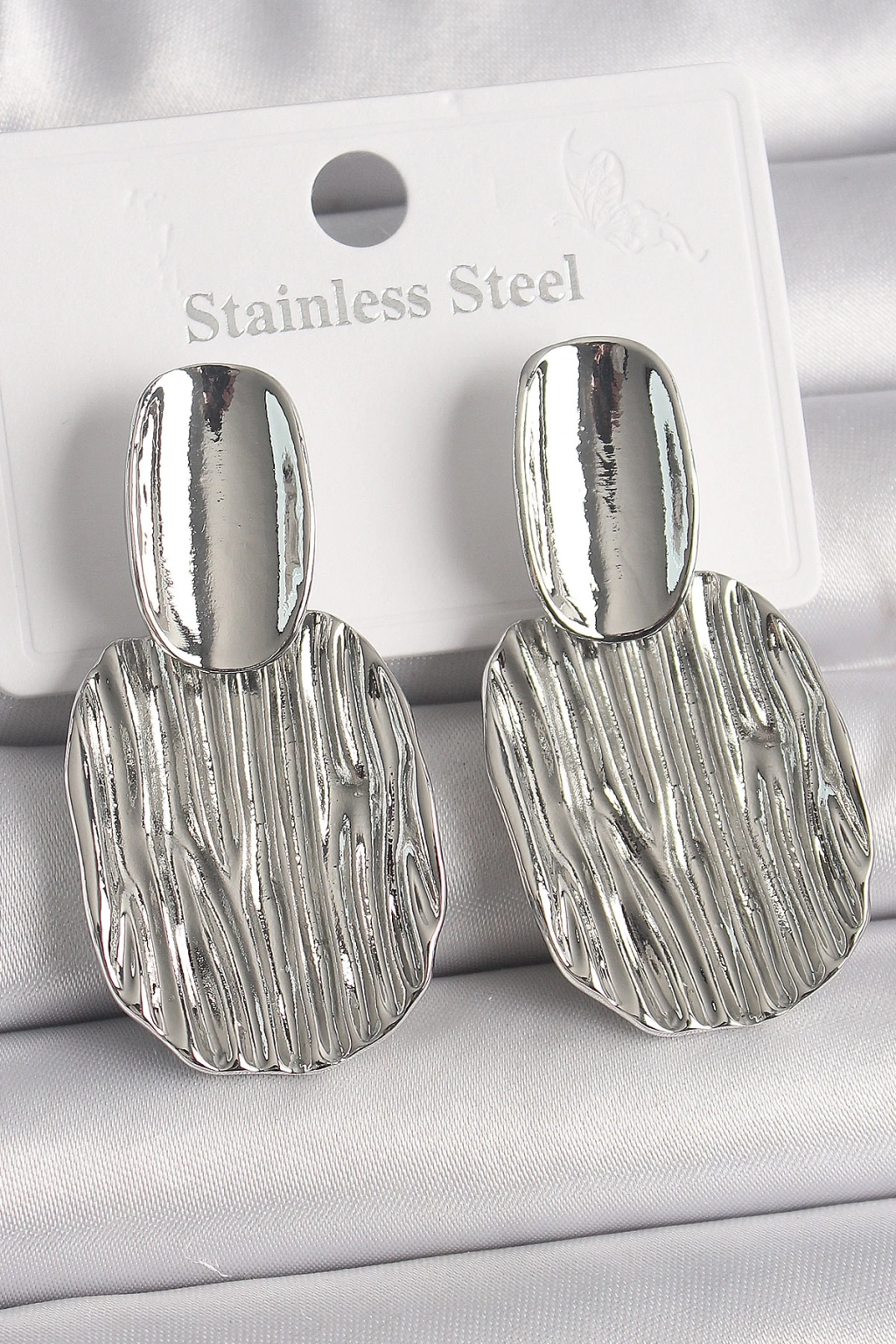 MuI MuI Pirinç Gümüş Renk İşlemeli Kare Plaka Model Kadın Küpe