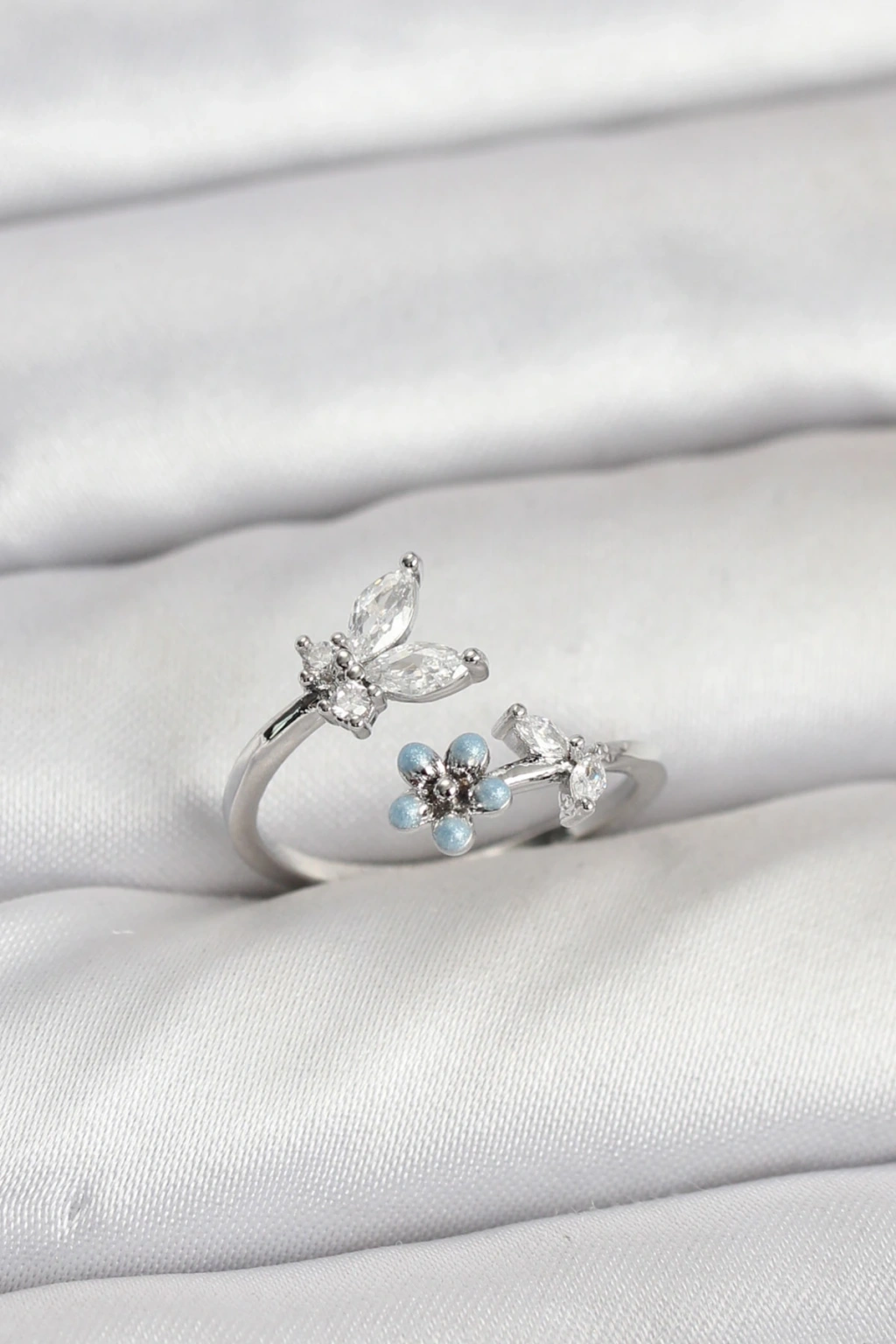 MuI MuI Pirinç Gümüş Renk Kelebek Model Kadın Yüzük