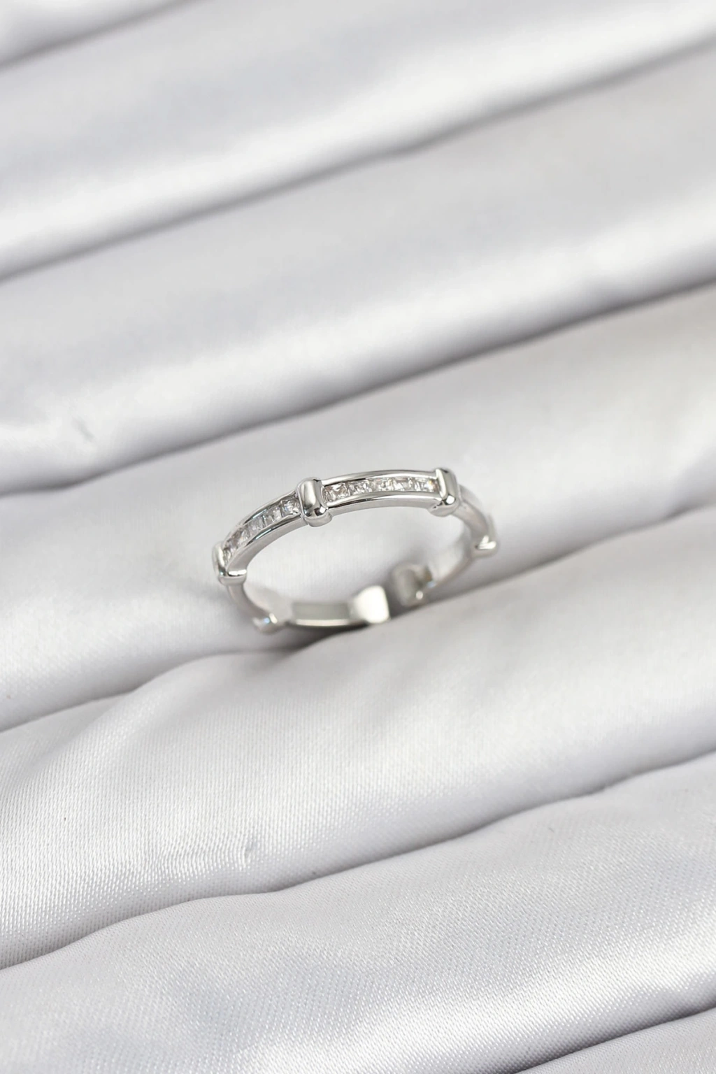 MuI MuI Pirinç Gümüş Renk Kemik Model Zirkon Taşlı Kadın Yüzük
