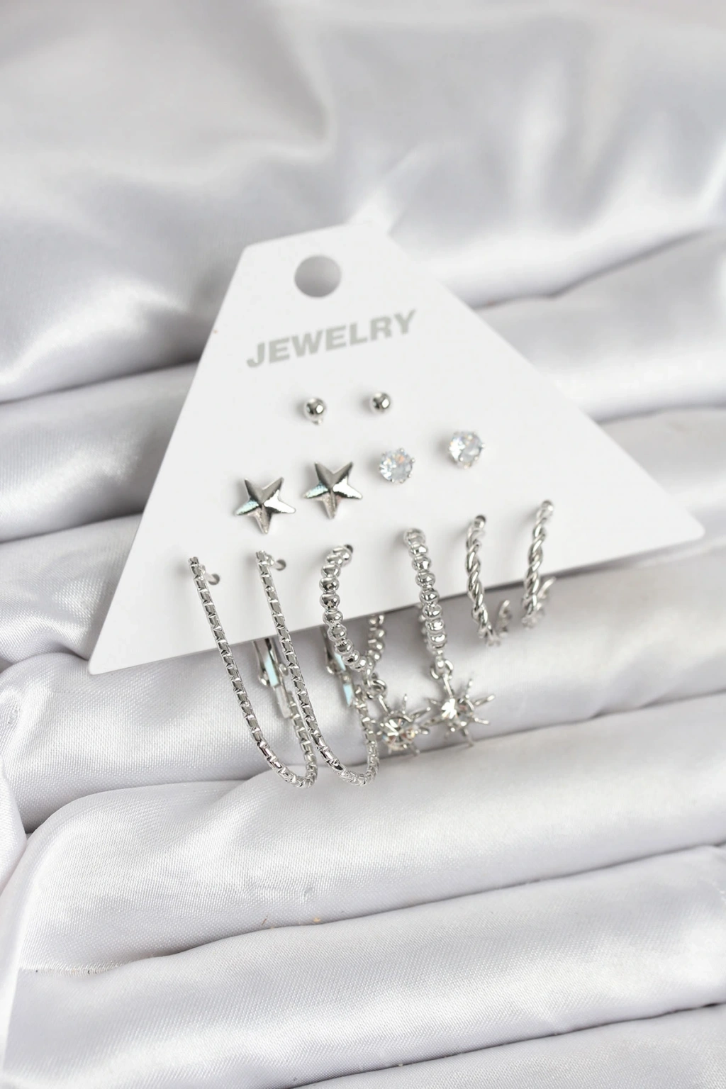 MuI MuI Pirinç Gümüş Renk Küpe Seti 6'lı