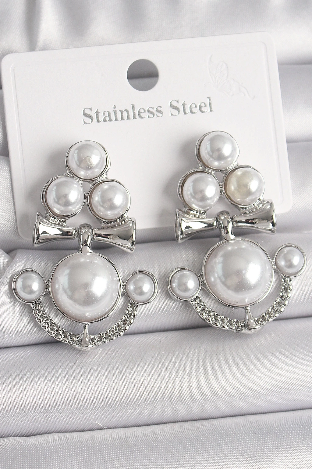 MuI MuI Pirinç Gümüş Renk Sallantı İncili Çapa Model Kadın Küpe