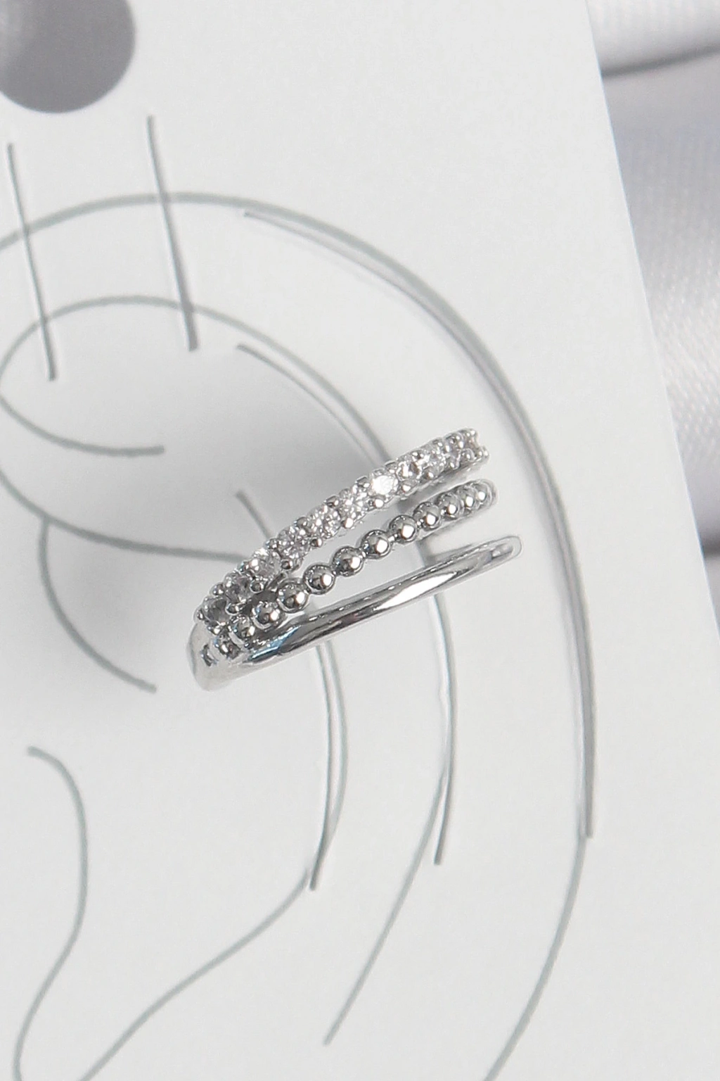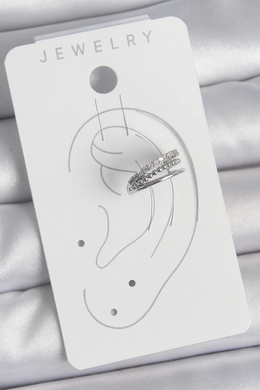 MuI MuI Pirinç Gümüş Renk Zirkon Taşlı 3'Lü Sıralı Model Kadın Kıkırdak Küpe