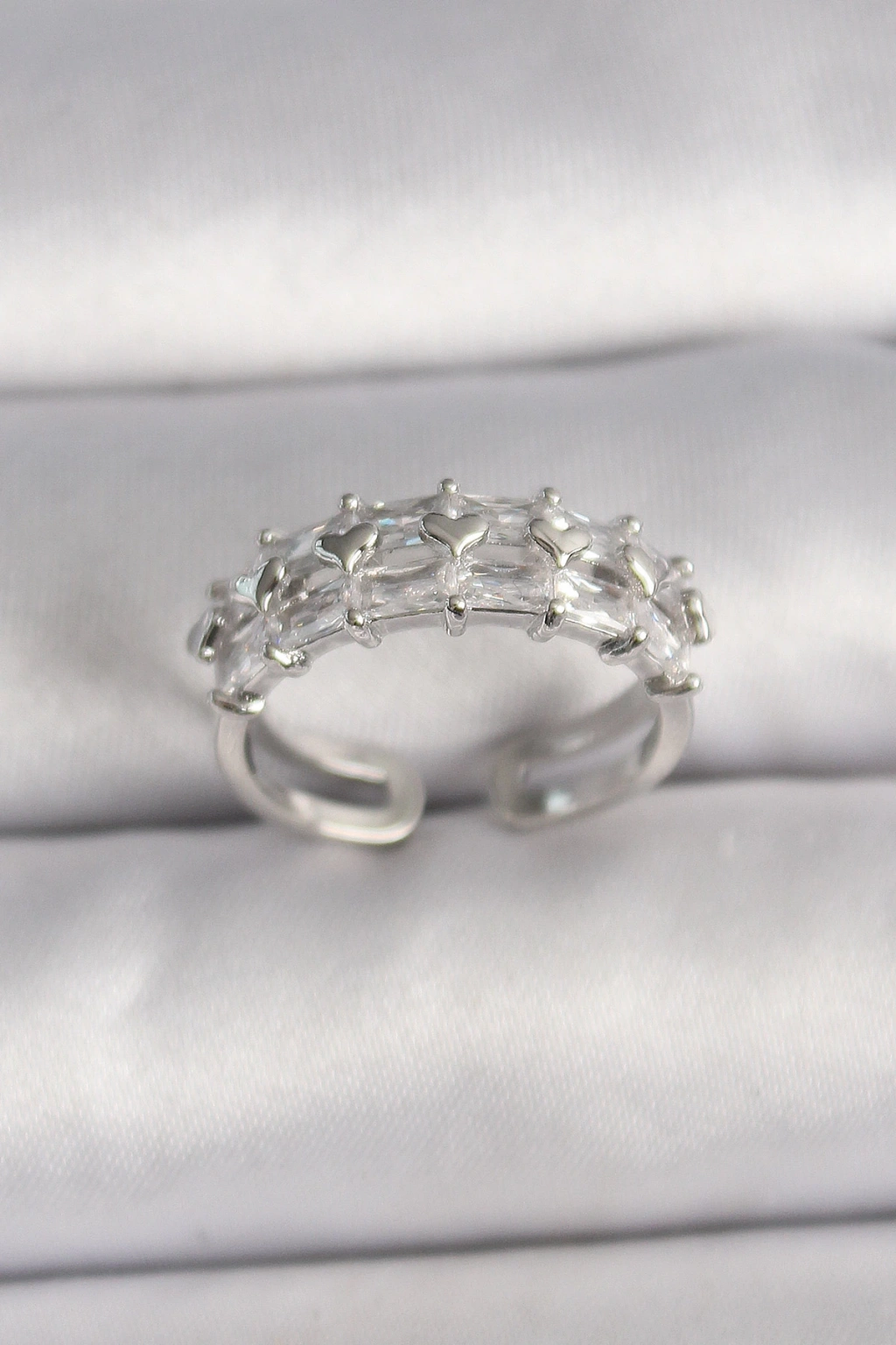 MuI MuI Pirinç Gümüş Renk Zirkon Taşlı Ayarlanabilir Yüzük