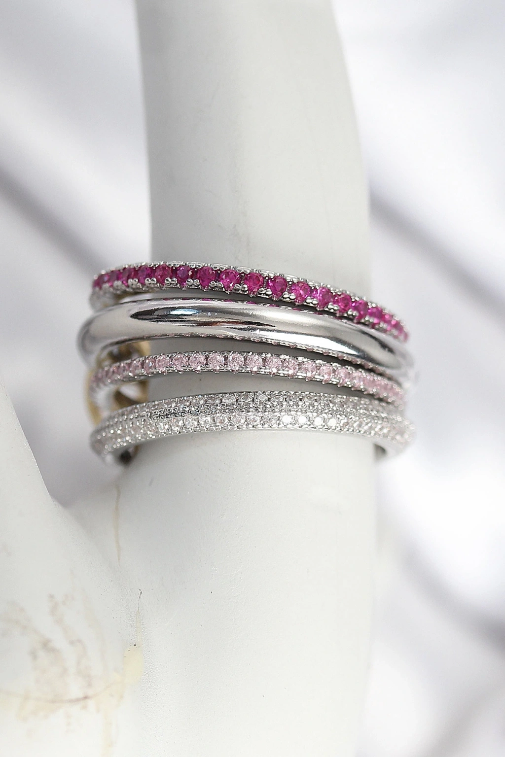 MuI MuI Pirinç Gümüş Renk Zirkon Taşlı 4'Lü Kadın Yüzük