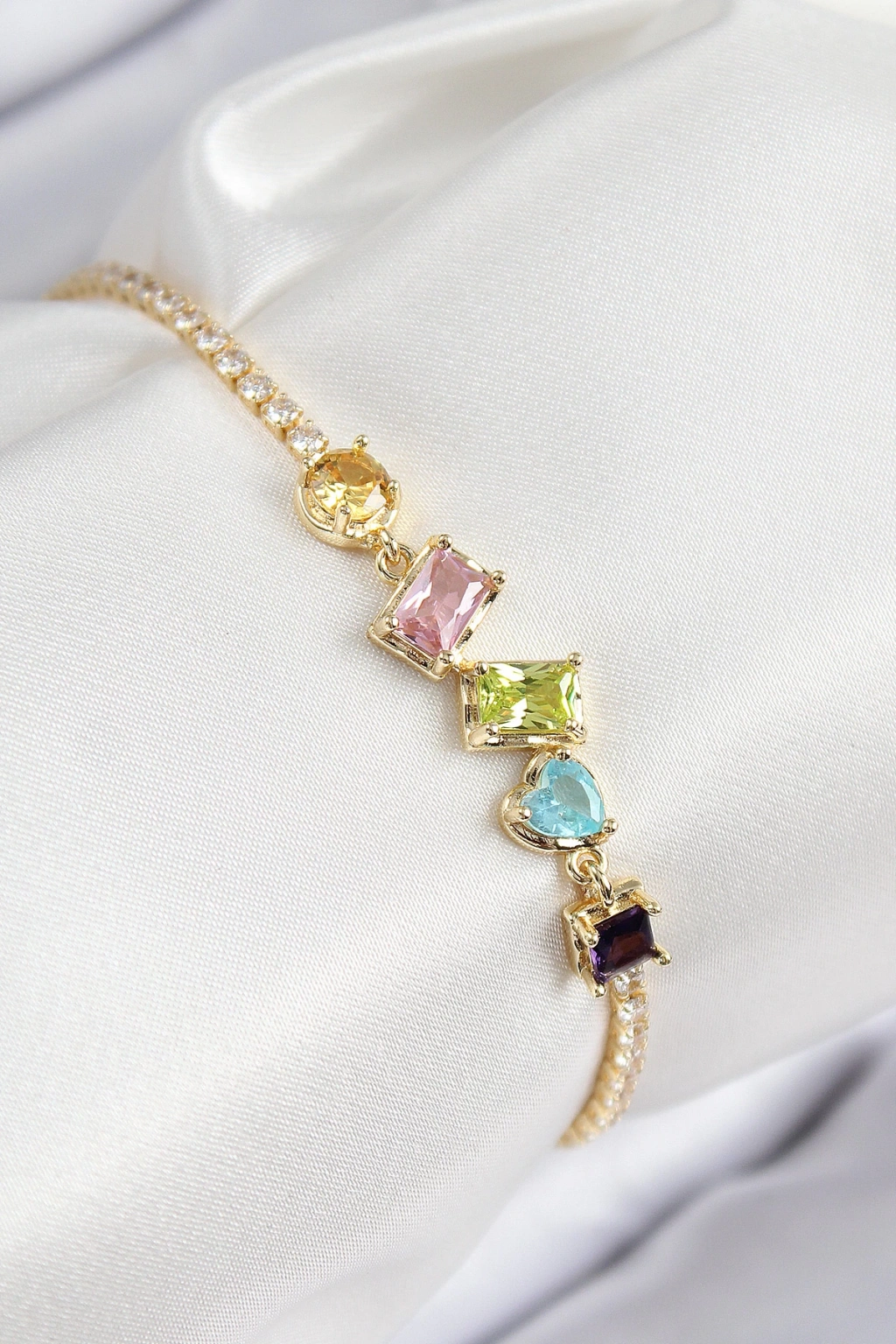 MuI MuI Pirinç Renkli Zirkon Taşlı Geometrik Model Gold Renk Kadın Bileklik