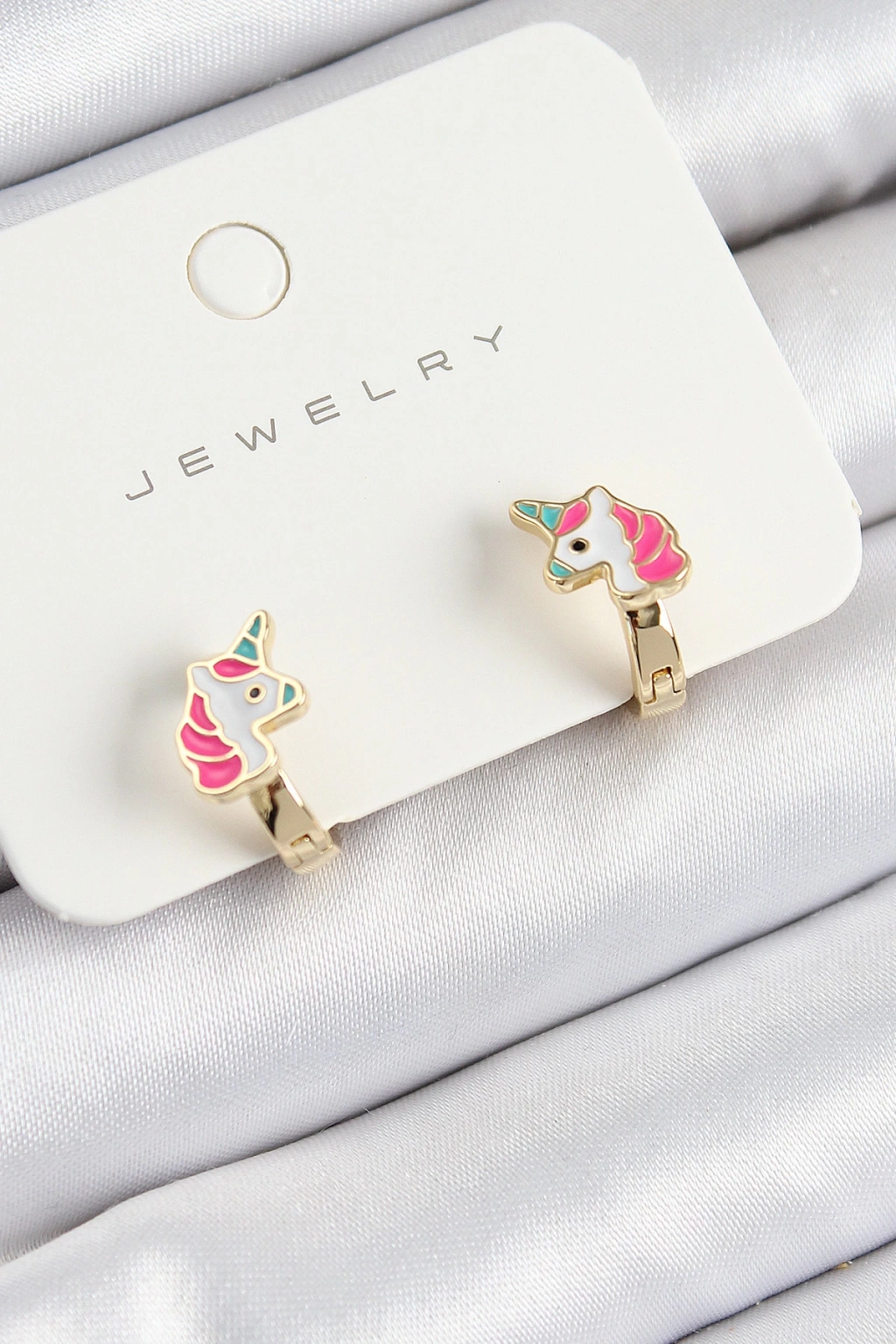 MuI MuI Pirinç Unıcorn Model Gold Renk Çocuk Küpe