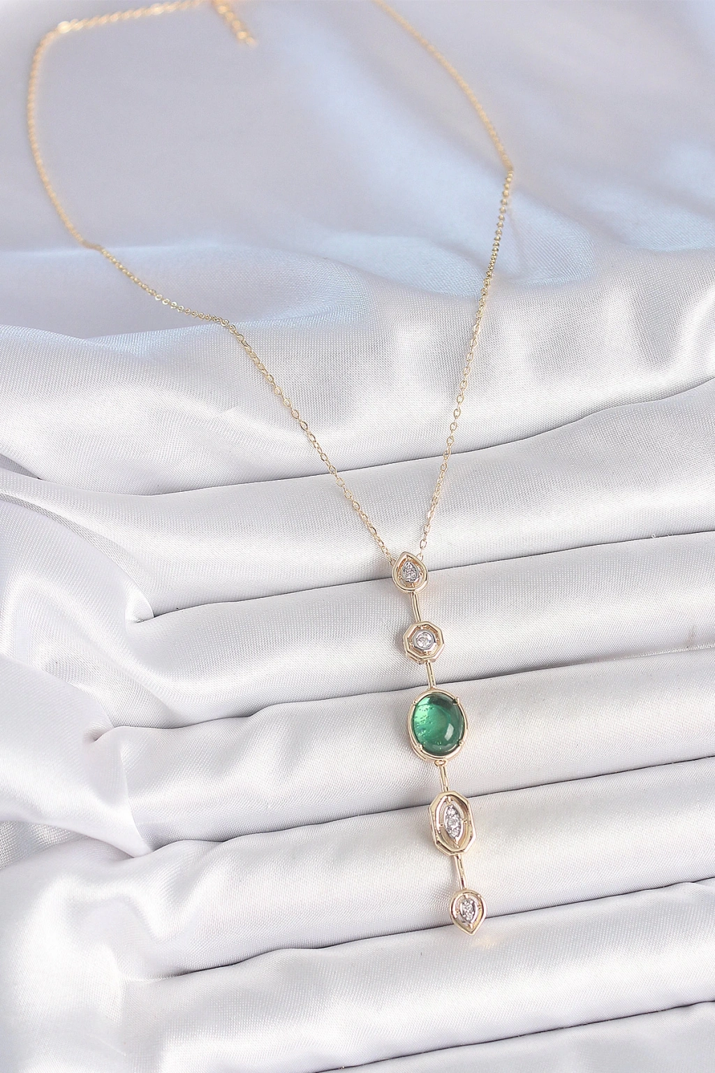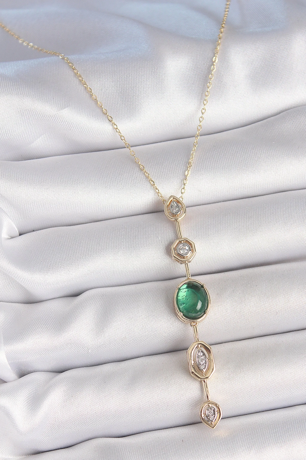 MuI MuI Pirinç Zincir Zümrüt Yeşil Gold Renk Zirkon Taşlı Y Kolye