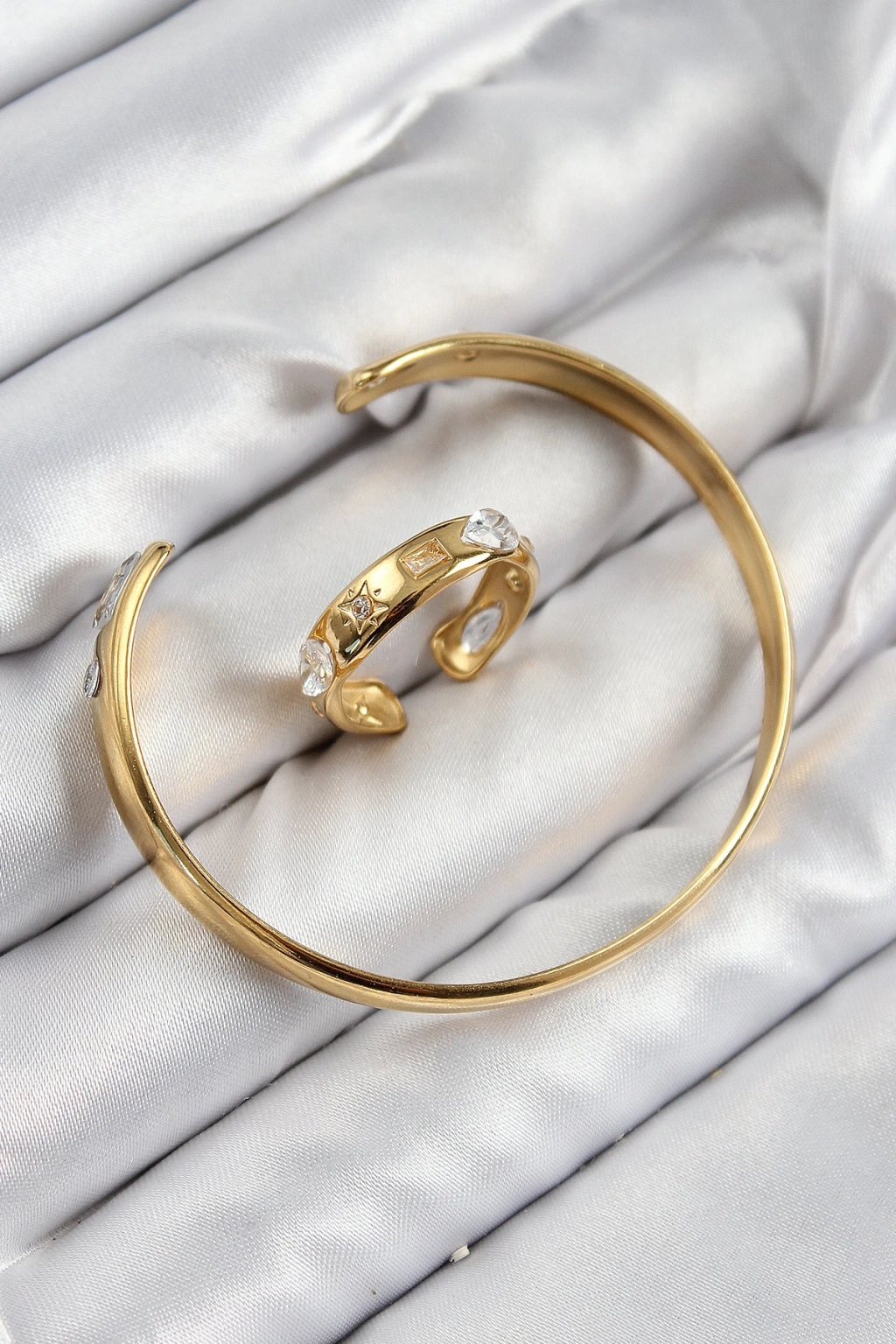 MuI MuI Pirinç Zirkon Taşlı Ayrık Model Gold Renk Bileklik Yüzük Set