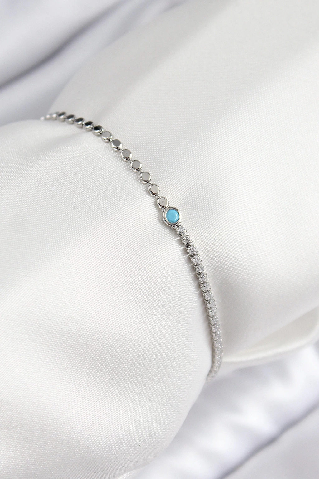MuI MuI Pirinç Zirkon Taşlı Boncuk Model Ezme Zincir Gümüş Renk Kadın Bileklik
