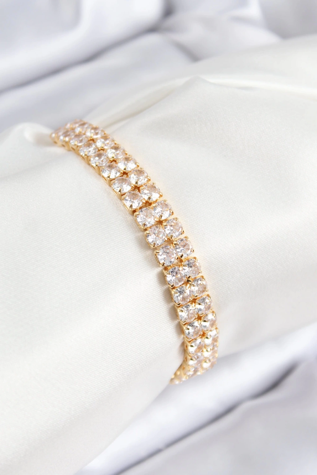 MuI MuI Pirinç Zirkon Taşlı Çift Sıra Kare Model Gold Renk Asansörlü Kadın Bileklik