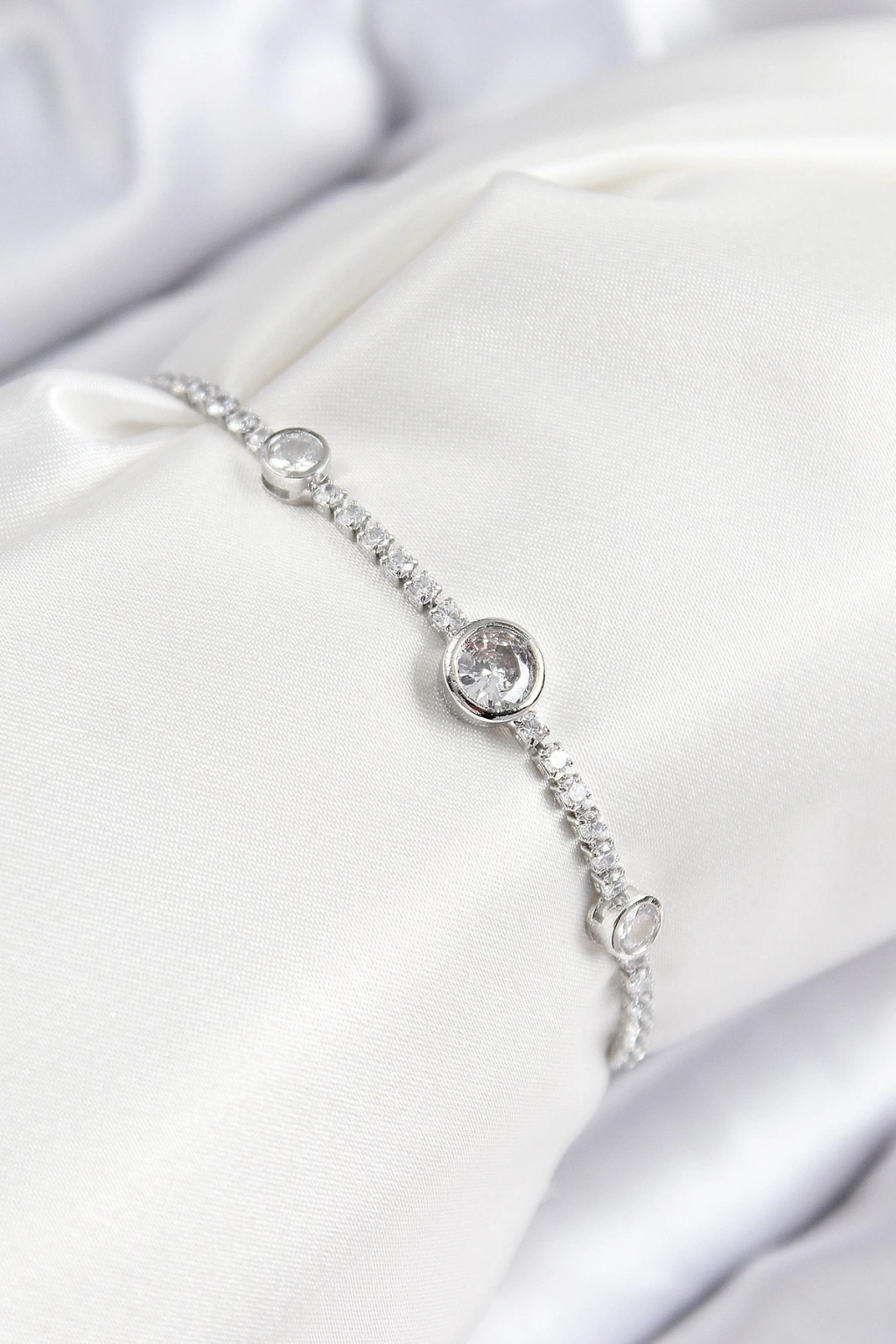 MuI MuI Pirinç Zirkon Taşlı Daire Model Gümüş Renk Asansörlü Kadın Bileklik