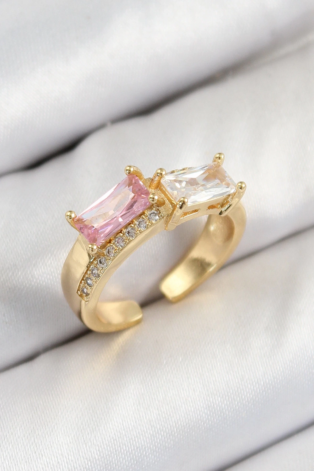 MuI MuI Pirinç Zirkon Taşlı Dikdörtgen Model Gold Renk Kadın Yüzük