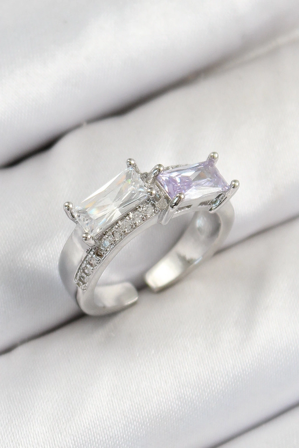 MuI MuI Pirinç Zirkon Taşlı Dikdörtgen Model Gümüş Renk Kadın Yüzük