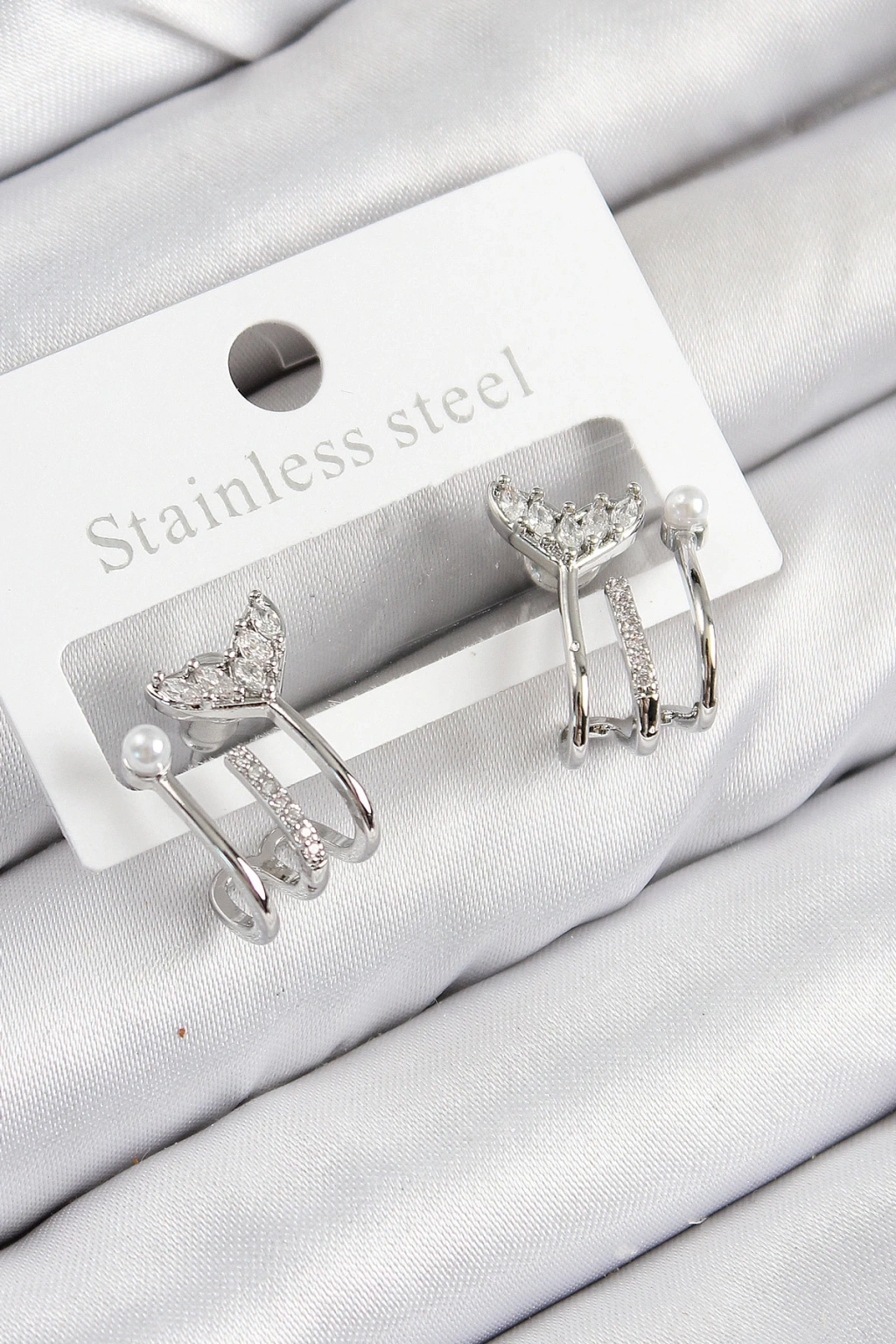 MuI MuI Pirinç Zirkon Taşlı İnci Detaylı Balık Kuyruğu Model Gümüş Renk Kadın Küpe