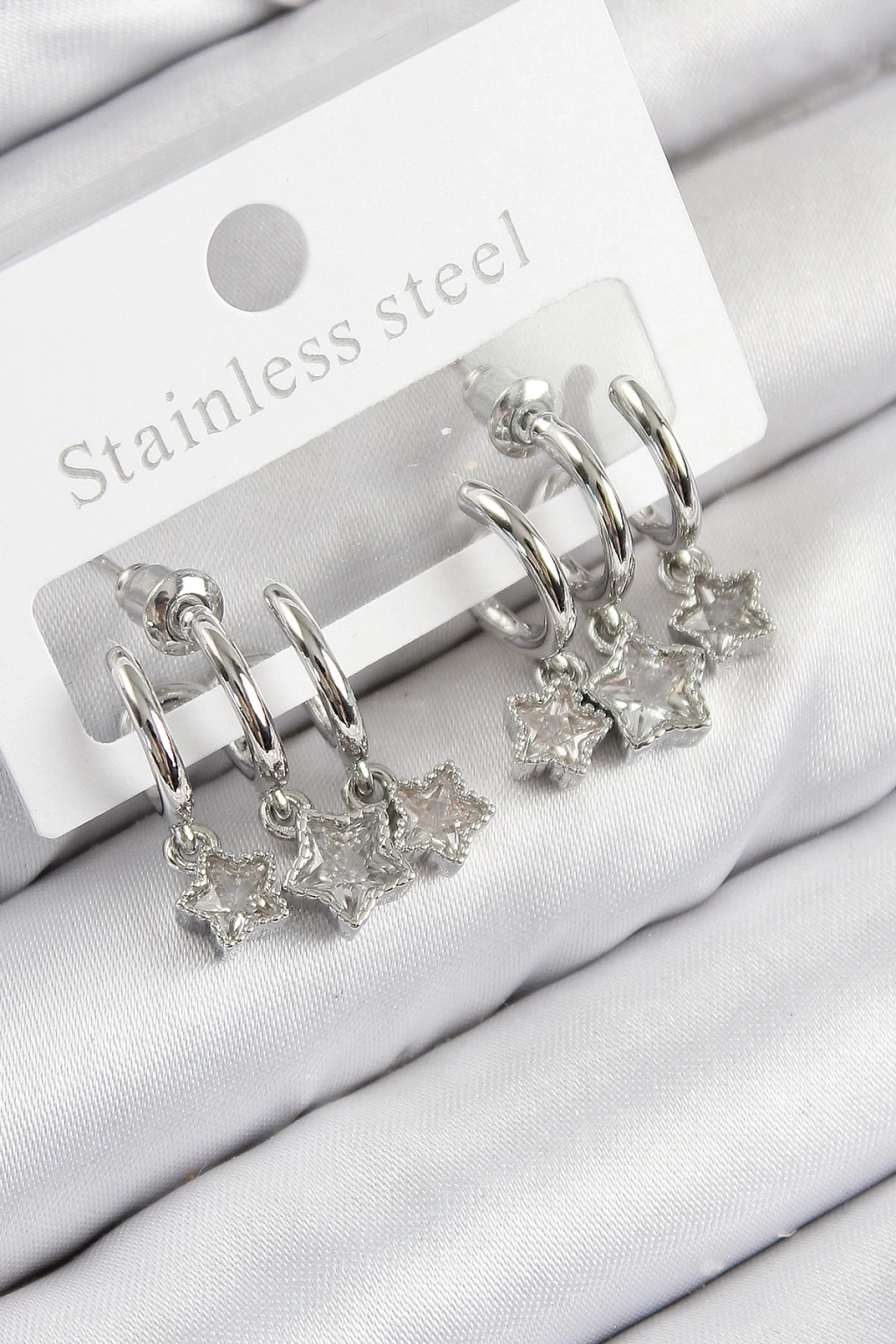 MuI MuI Pirinç Zirkon Taşlı Sallantılı Yıldız Model Gümüş Renk Kadın Küpe