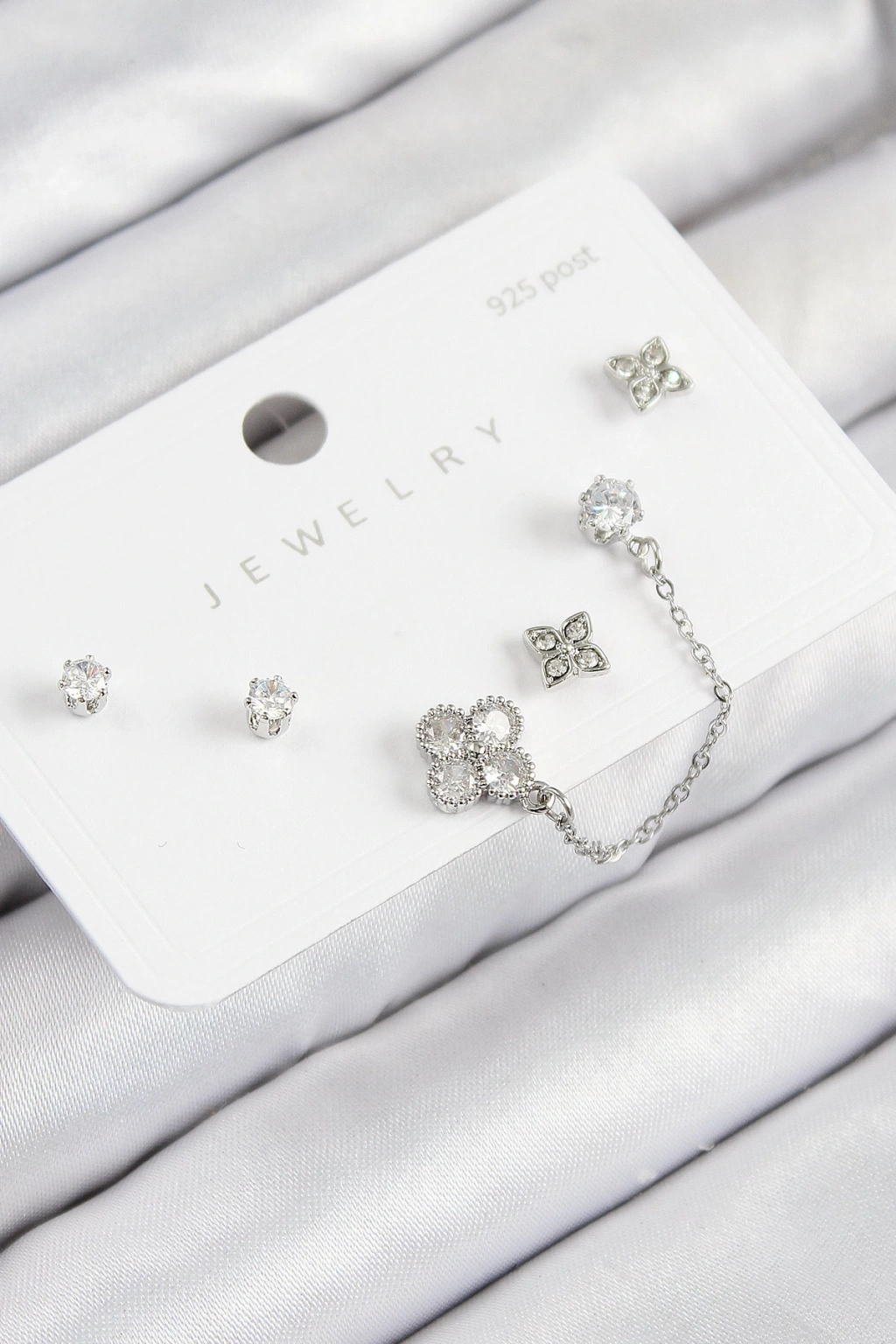 MuI MuI Pirinç Zirkon Taşlı Yonca Model Gümüş Renk 925 Ayar Gümüş Çivi Kadın Küpe Set