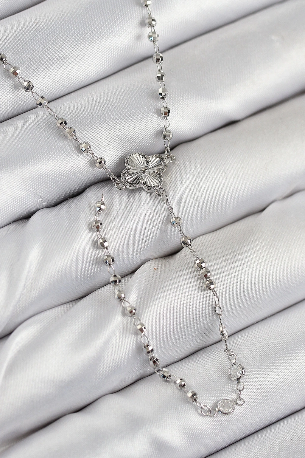 MuI MuI Pirinç Zirkon Taşlı Yonca Model Gümüş Renk Kadın Y Kolye