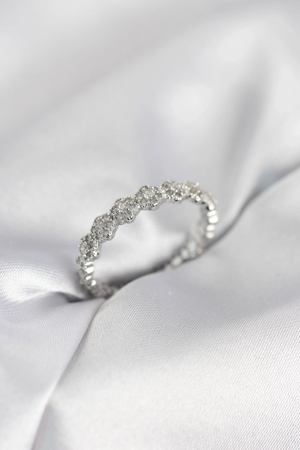 MuI MuI Sıralı Çiçek Model Gümüş Renk Zirkon Taşlı Kadın Yüzük