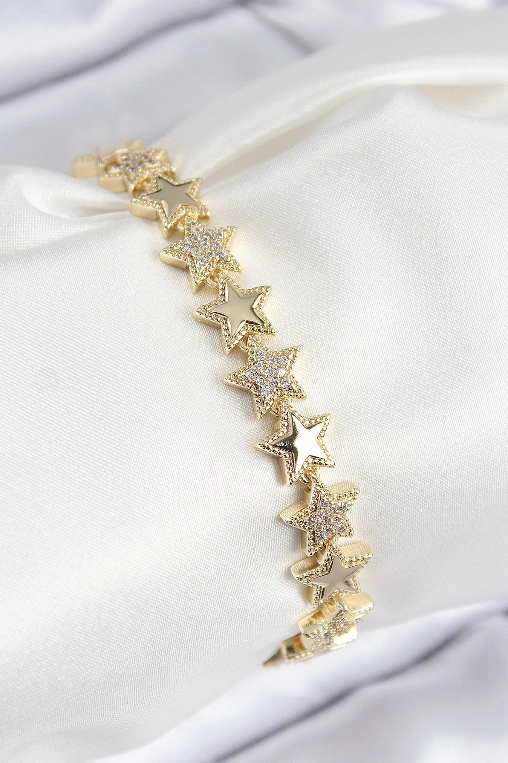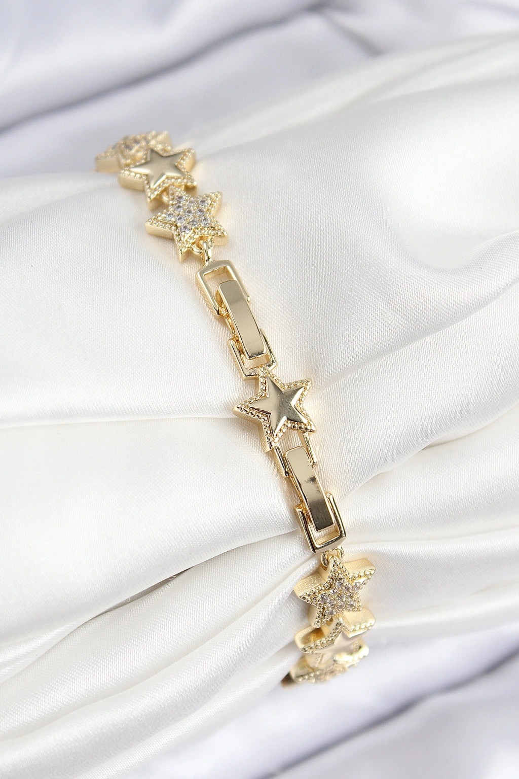 MuI MuI VIP Pirinç Zirkon Taşlı Yıldız Model Gold Renk Kadın Bileklik