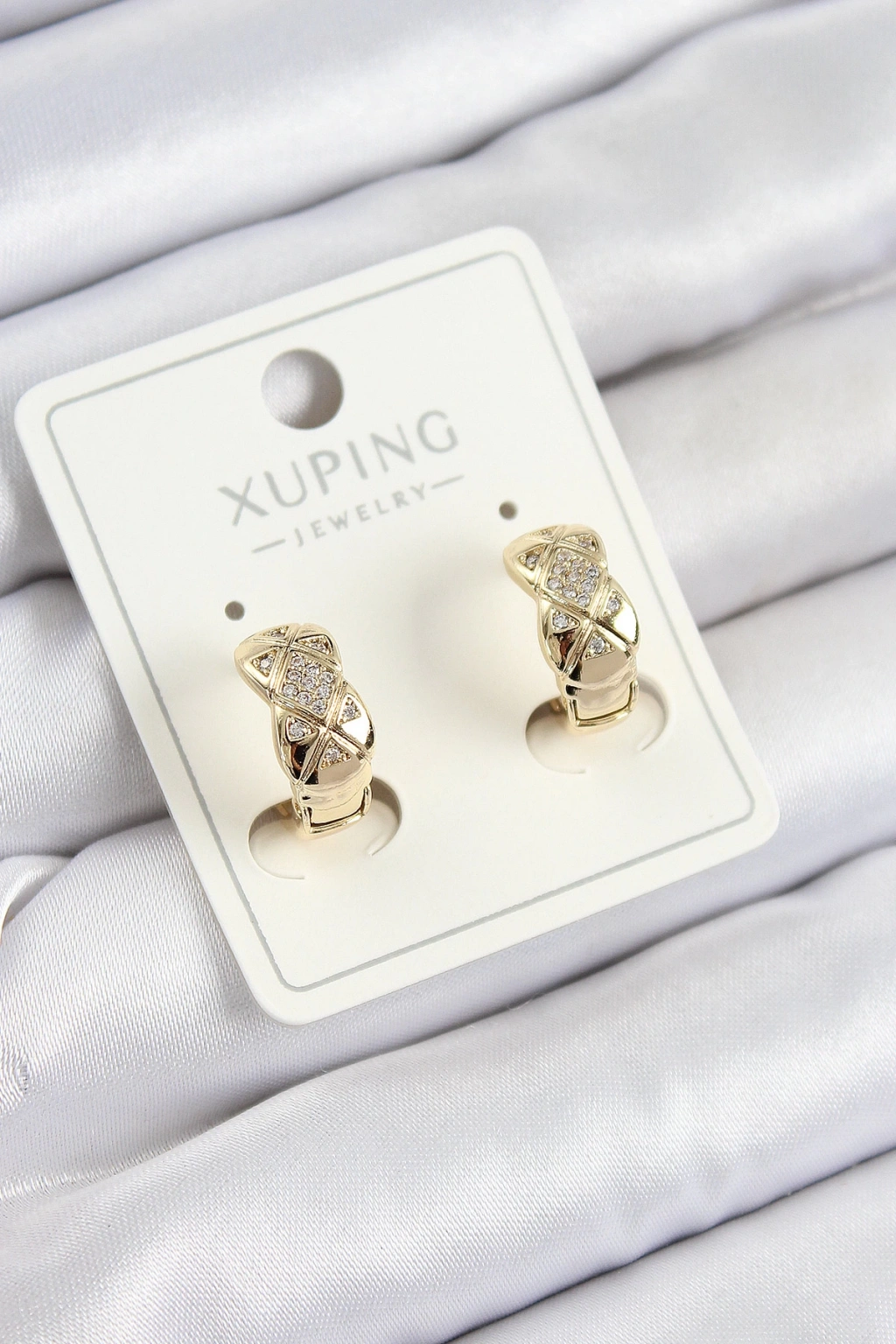 MuI MuI Xuping Zirkon Taşlı Geometrik Desenli Halka Model Gold Renk Kadın Küpe