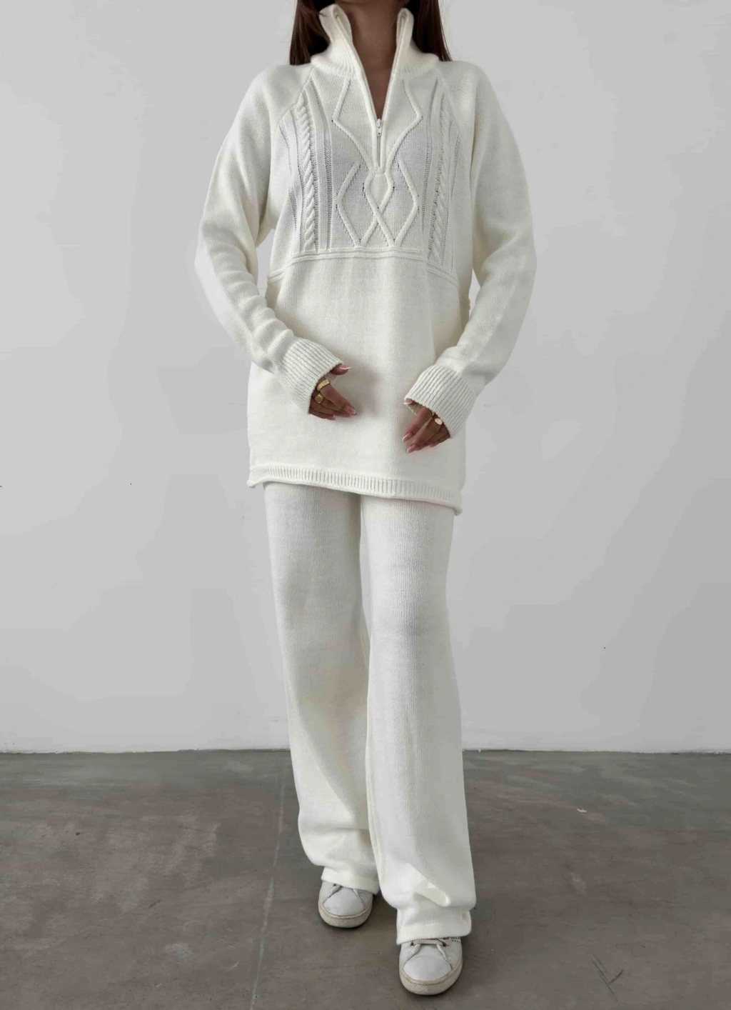 Zincir Kemer Ceket Şort Takım - Beyaz