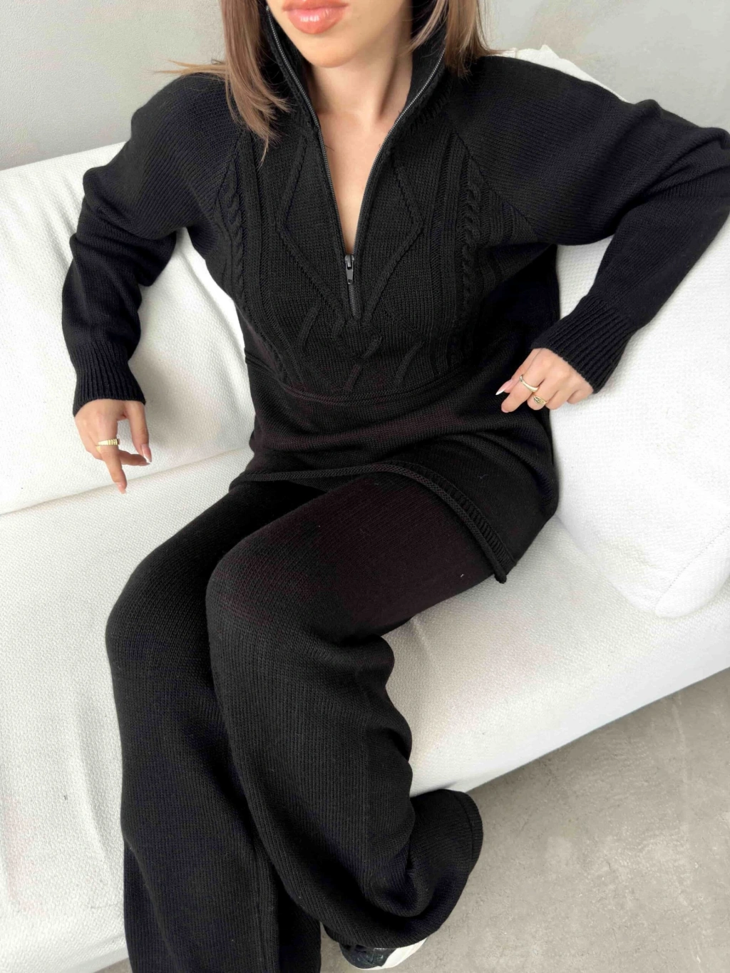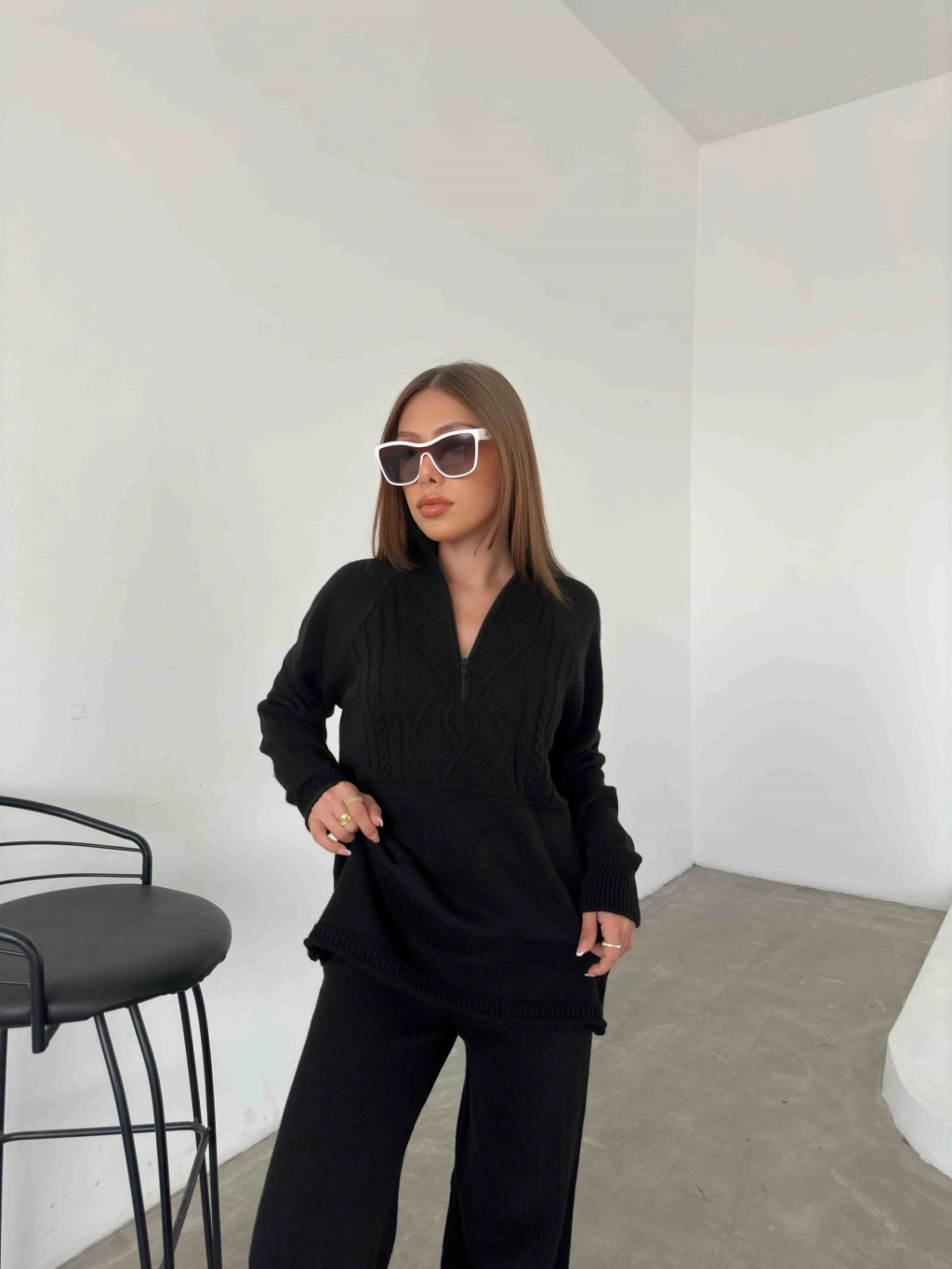 Kol Detay Triko Kazak 1502 - Siyah , Standart Beden (5 Adet)