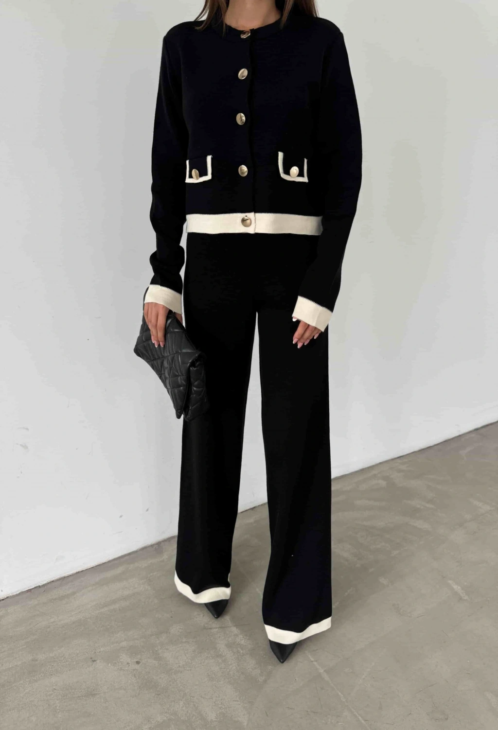 Ürün İçeriği: %30 Yün %70 Akrilik Model Bedeni: (S Beden) Eu:36 Us:4 Ürün Ölçüleri:Üst Hırka:Boy: 50 cm - En: 48 cm - Etek Ucu: 43 cm - Kol Boyu: 65 cmAlt Pantolon:Bel:32 cm - Basen: 48 cm - Boy:105 cm