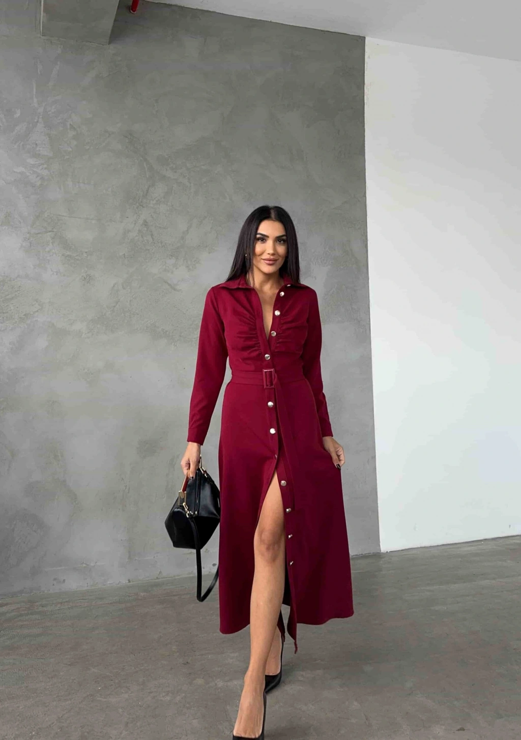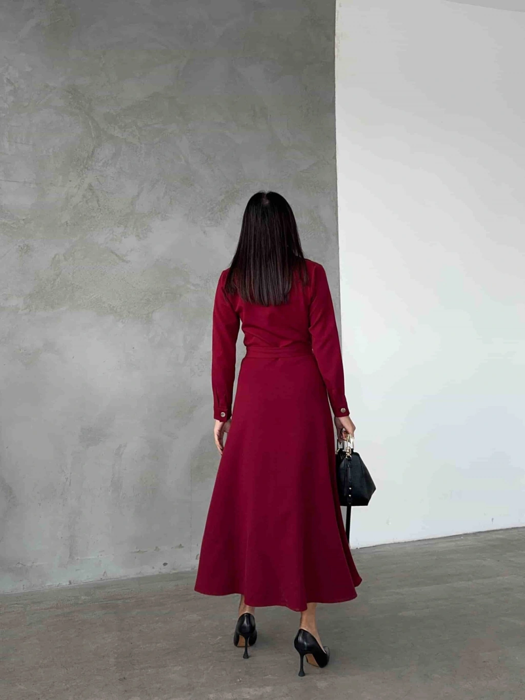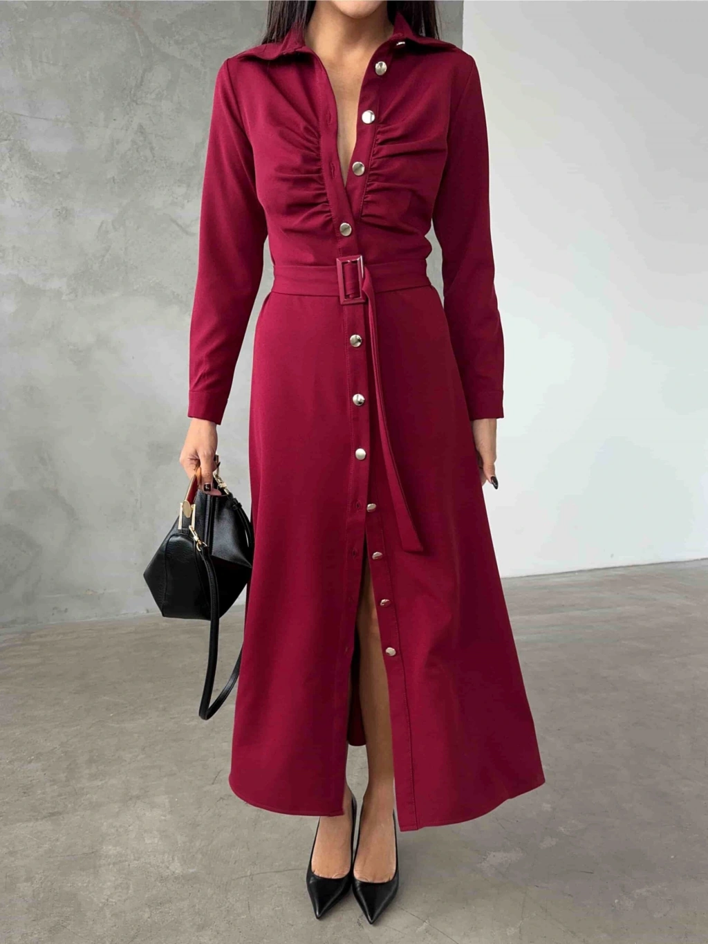 Astarlı Etek Gömlek Takım - Bordo