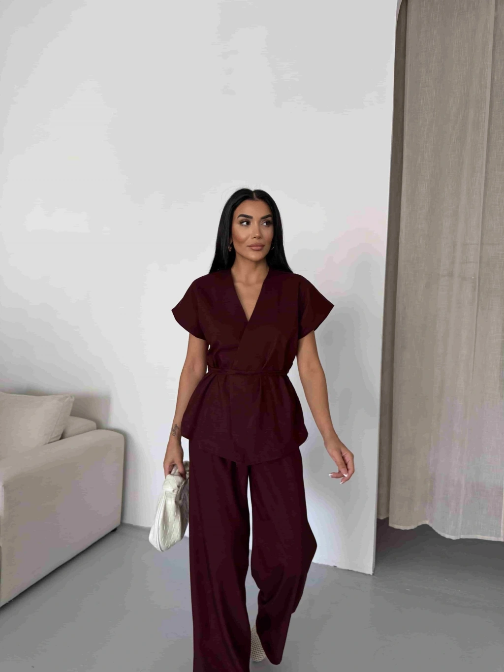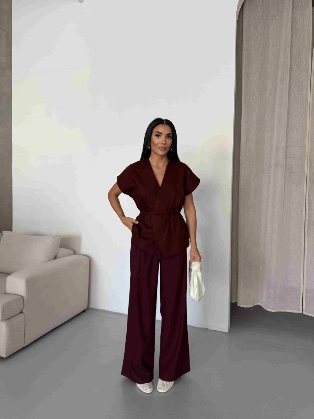 Astarlı Etek Gömlek Takım - Bordo