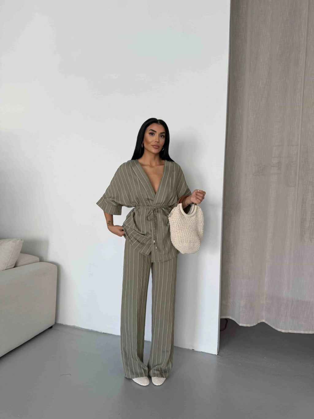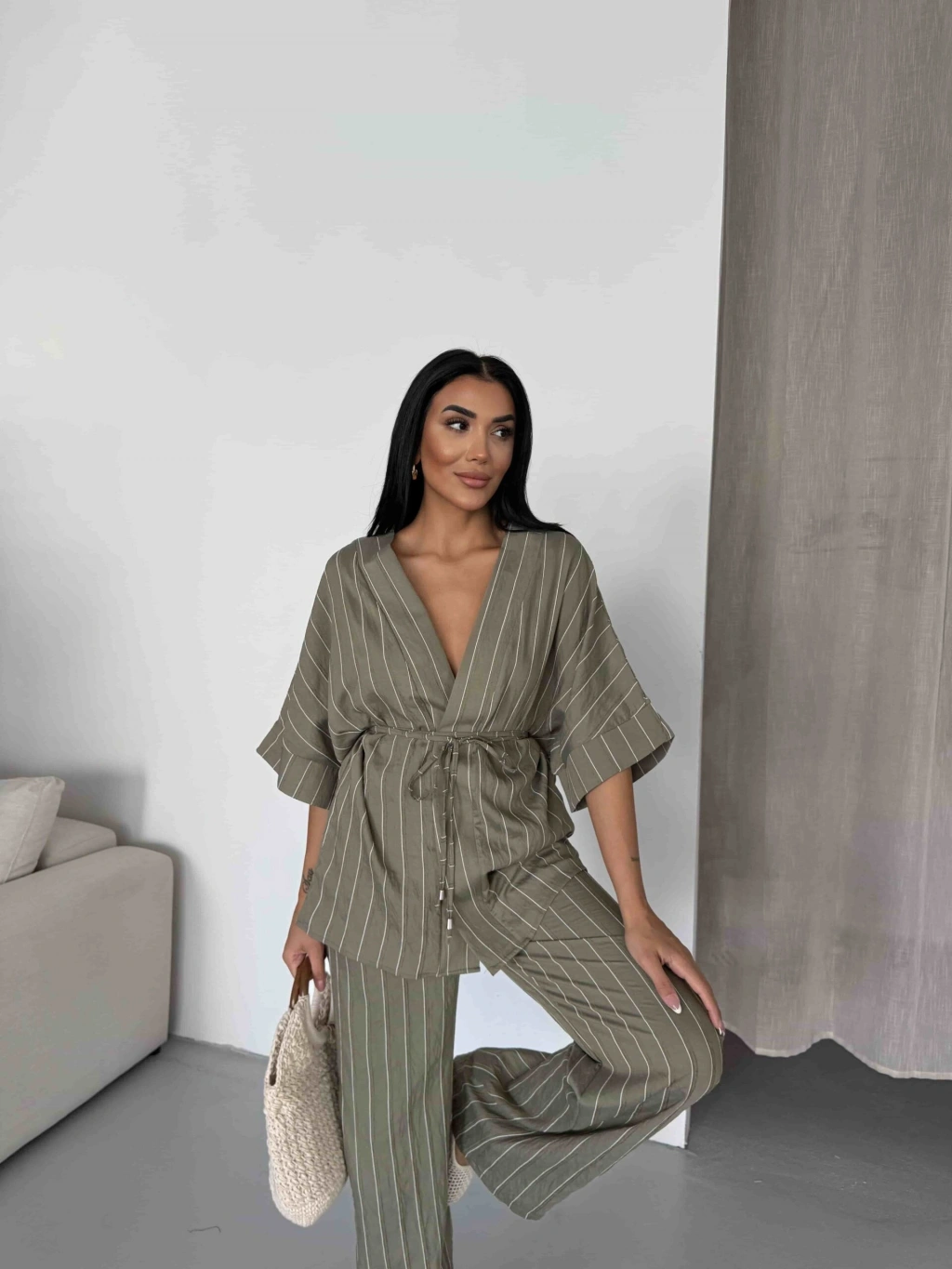 Çizgili Kimono Takım 2517 - Çağla
