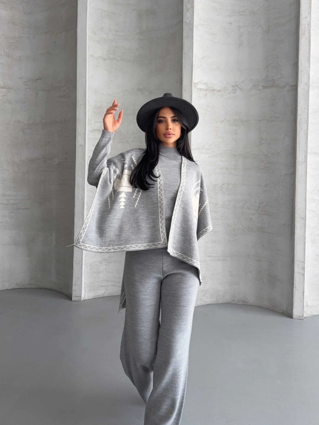 Ürün İçeriği: %30 Yün %70 Akrilik Model Bedeni: (S/M Beden) Eu:36-38 Us:4-6 Ürün Ölçüleri:Üst Hırka: Boy: 80 cm - En: 82 cmÜst Kazak: Boy: 60 cm - En: 45 cm - Kol Boyu: 55 cmAlt Pantolon: Bel: 30 cm - Basen: 45 cm - Boy: 110 cm