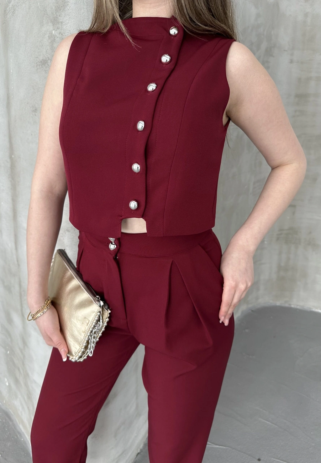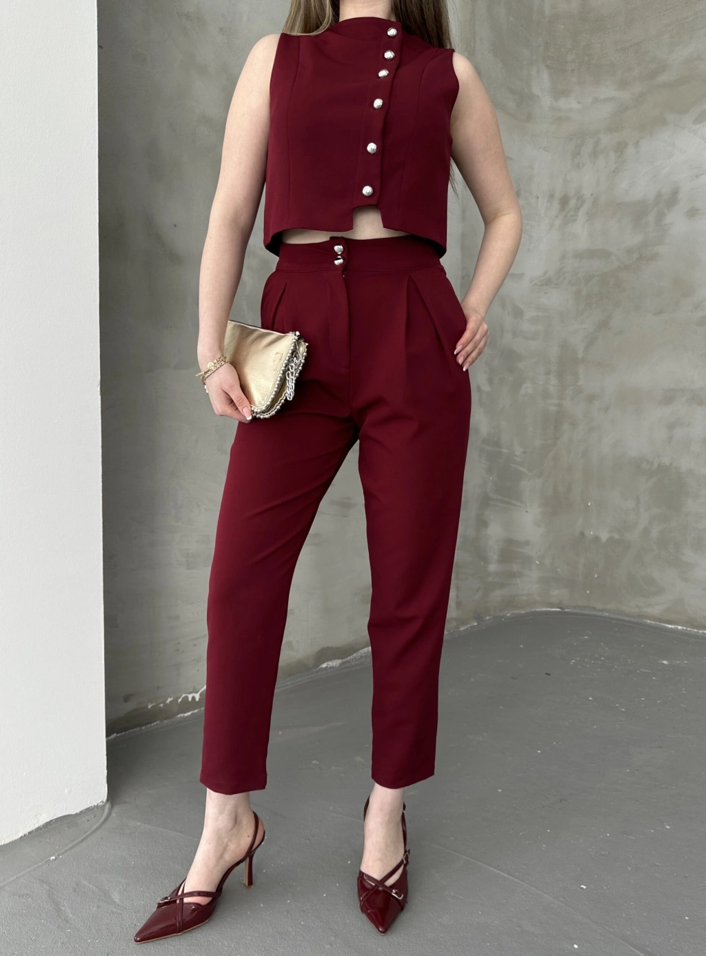 Ürün İçeriği: %95 cotton %5 polyester Model Bedeni: (S Beden) Eu:36 Us:4 Ürün Ölçüleri:Üst Yelek:Boy: 42 cm - En: 44 cmAlt Pantolon:Bel: 36 cm - Basen: 50 cm - Boy: 100 cm
